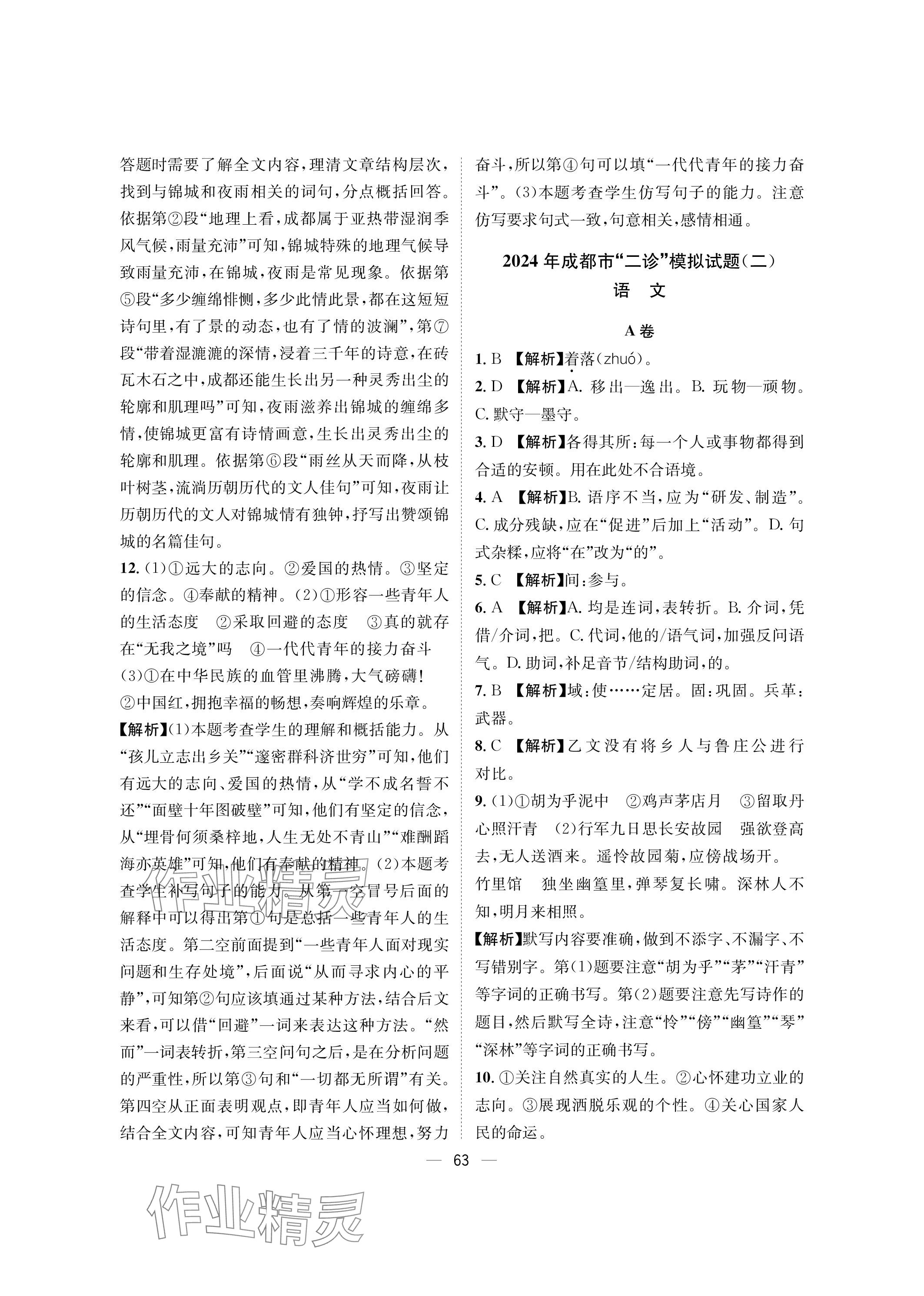 注:目前有些书本章节名称可能整理的还不是很完善,但都是按照顺序排列的,请同学们按照顺序仔细查找。练习册 2024年蓉城中考名校模拟真题汇编语文 答案主要是用来给同学们做完题方便对答案用的,请勿直接抄袭。