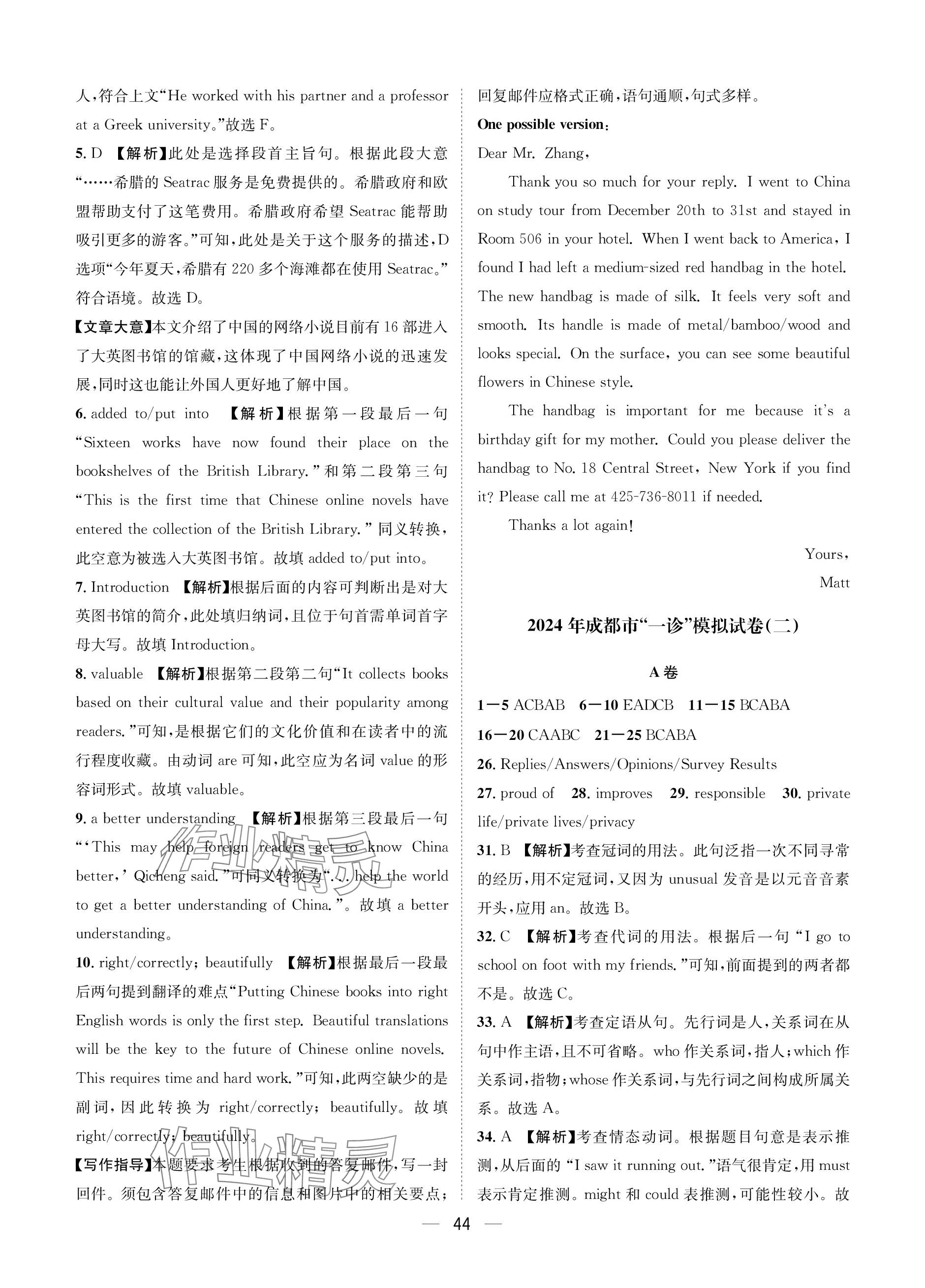 注:目前有些书本章节名称可能整理的还不是很完善,但都是按照顺序排列的,请同学们按照顺序仔细查找。练习册 2024年蓉城中考名校模拟真题汇编英语 答案主要是用来给同学们做完题方便对答案用的,请勿直接抄袭。