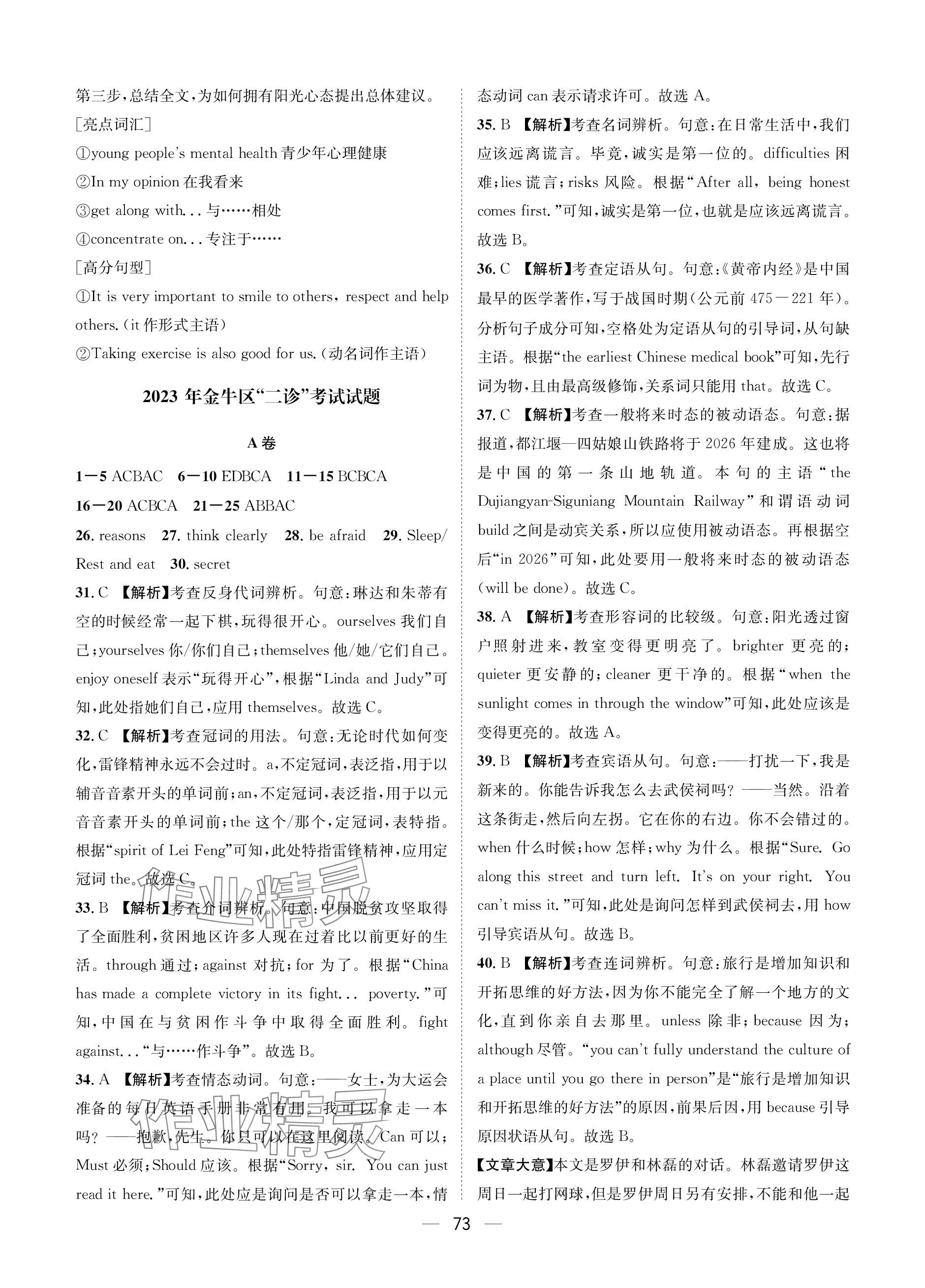 - 参考答案第73页