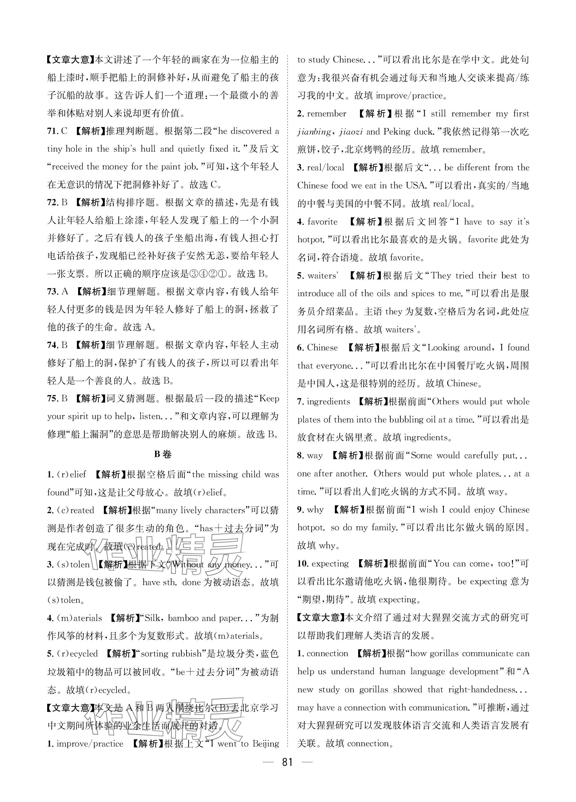- 参考答案第81页
