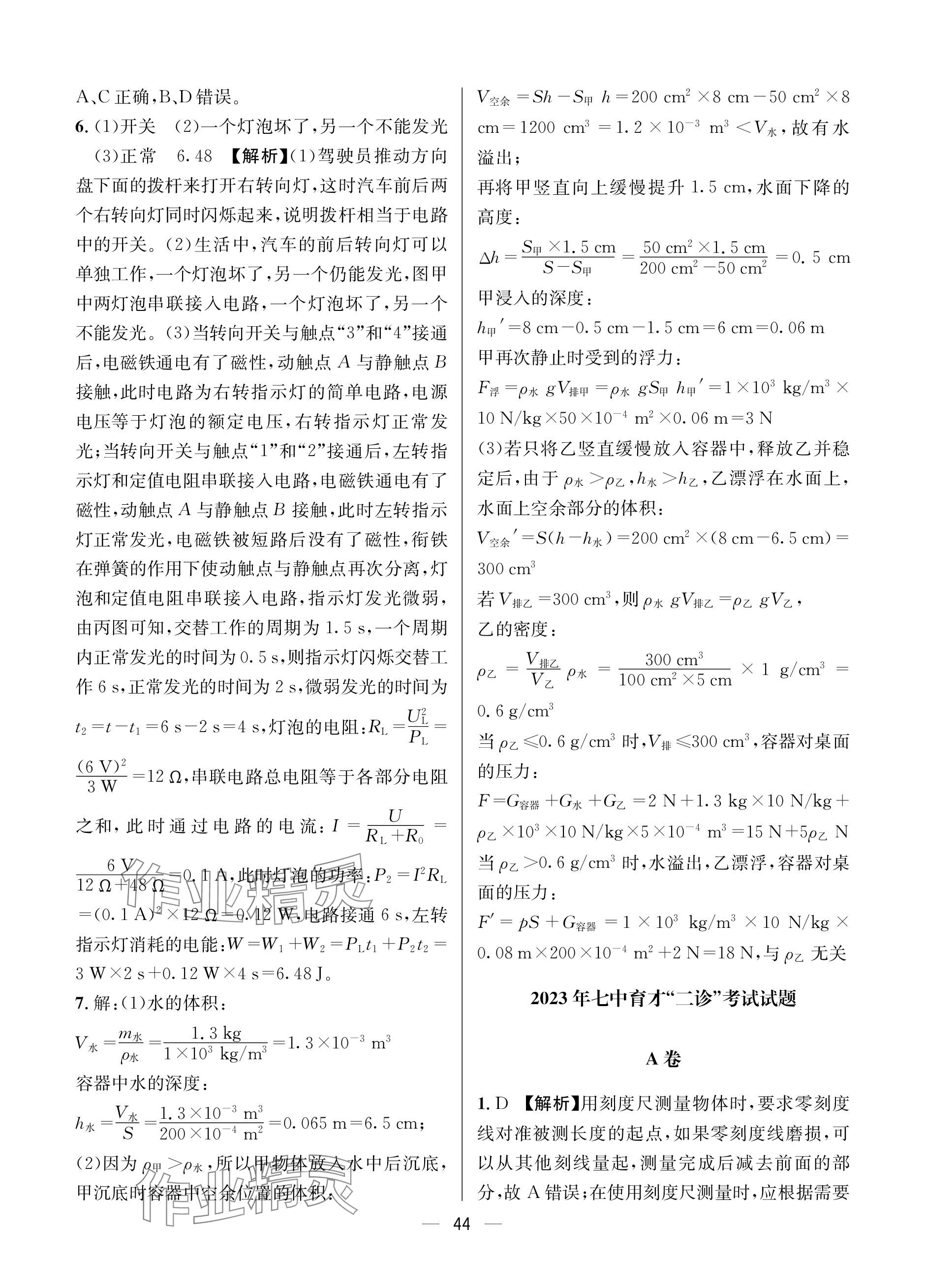 注:目前有些书本章节名称可能整理的还不是很完善,但都是按照顺序排列的,请同学们按照顺序仔细查找。练习册 2024年蓉城中考名校模拟真题汇编物理 答案主要是用来给同学们做完题方便对答案用的,请勿直接抄袭。