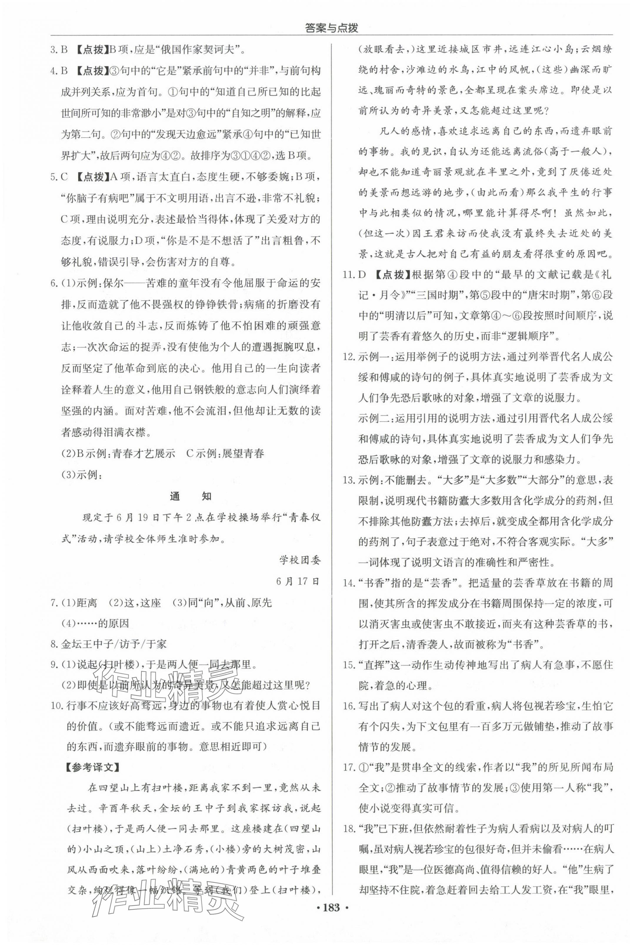 注:目前有些书本章节名称可能整理的还不是很完善,但都是按照顺序排列的,请同学们按照顺序仔细查找。练习册 2024年启东中学作业本九年级语文下册人教版 答案主要是用来给同学们做完题方便对答案用的,请勿直接抄袭。