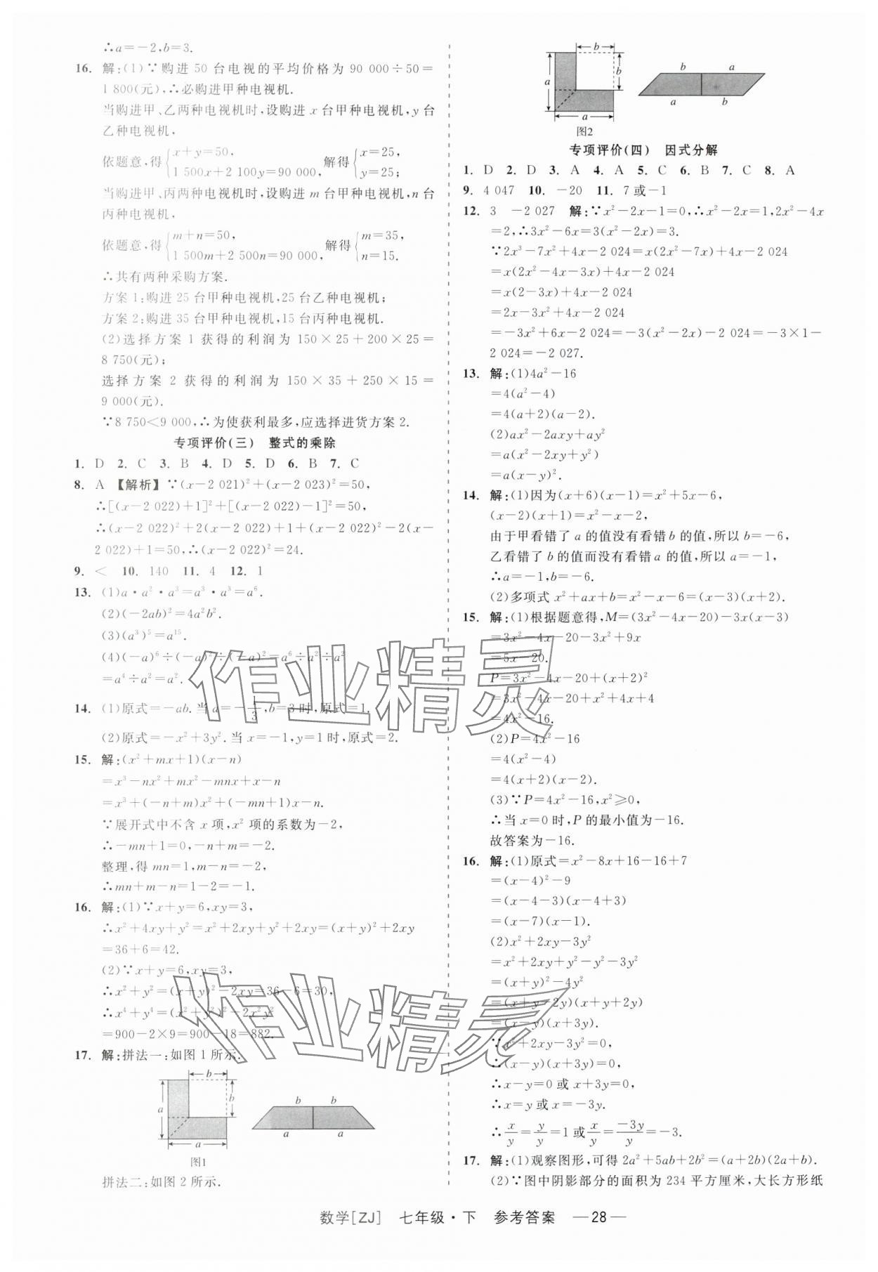 注:目前有些书本章节名称可能整理的还不是很完善,但都是按照顺序排列的,请同学们按照顺序仔细查找。练习册 2024年精彩练习就练这一本七年级数学下册浙教版 答案主要是用来给同学们做完题方便对答案用的,请勿直接抄袭。