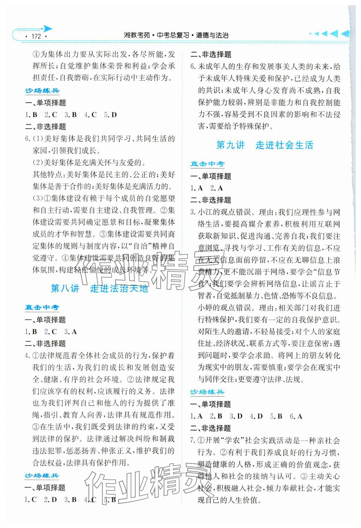 注:目前有些书本章节名称可能整理的还不是很完善,但都是按照顺序排列的,请同学们按照顺序仔细查找。练习册 2024年湘教考苑中考总复习道德与法治湘潭版 答案主要是用来给同学们做完题方便对答案用的,请勿直接抄袭。