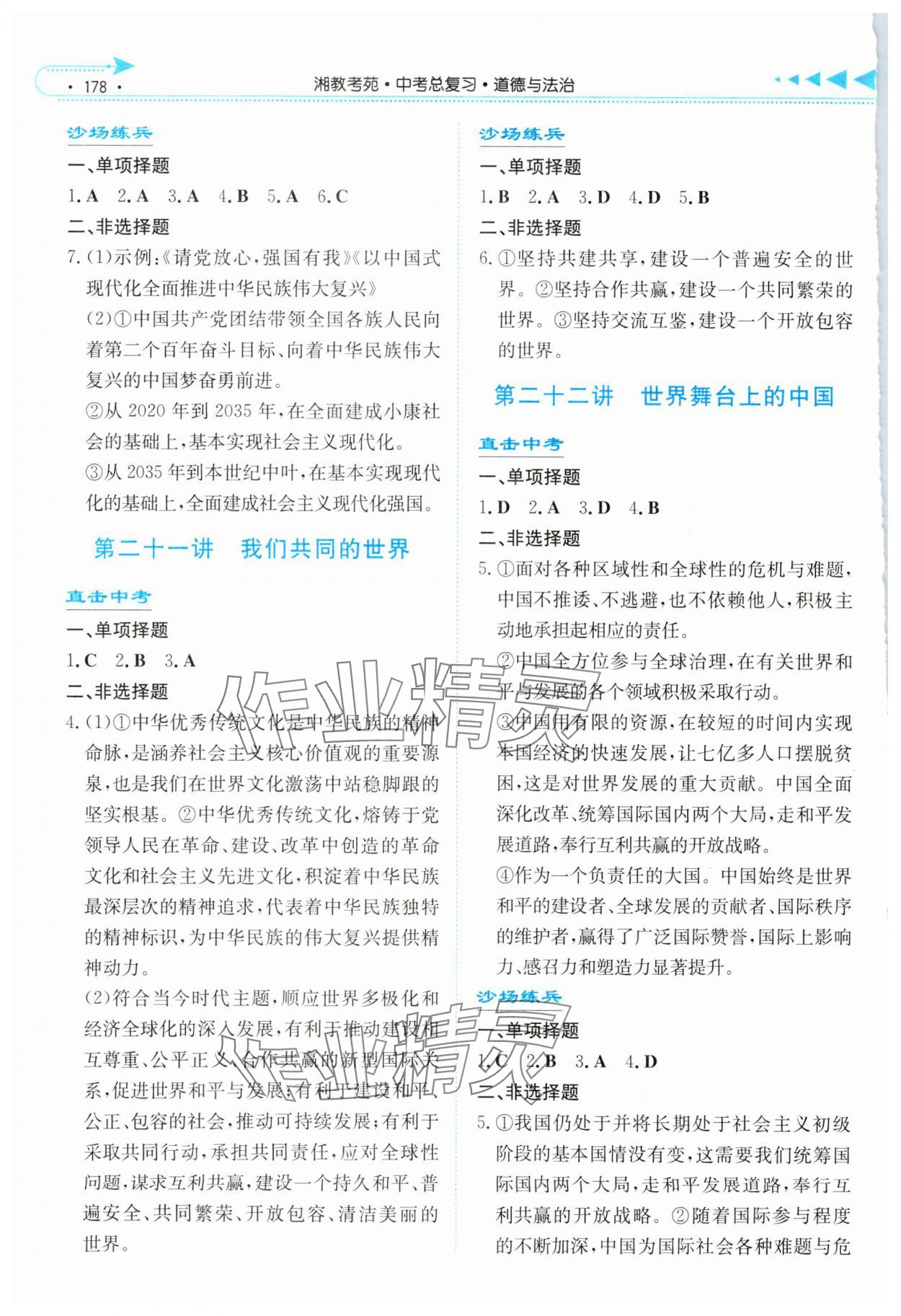注:目前有些书本章节名称可能整理的还不是很完善,但都是按照顺序排列的,请同学们按照顺序仔细查找。练习册 2024年湘教考苑中考总复习道德与法治湘潭版 答案主要是用来给同学们做完题方便对答案用的,请勿直接抄袭。