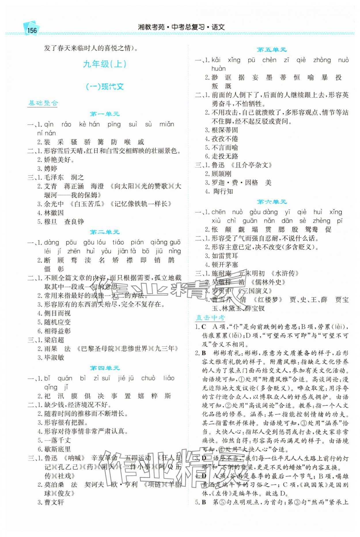 注:目前有些书本章节名称可能整理的还不是很完善,但都是按照顺序排列的,请同学们按照顺序仔细查找。练习册 2024年湘教考苑中考总复习语文湘潭版 答案主要是用来给同学们做完题方便对答案用的,请勿直接抄袭。