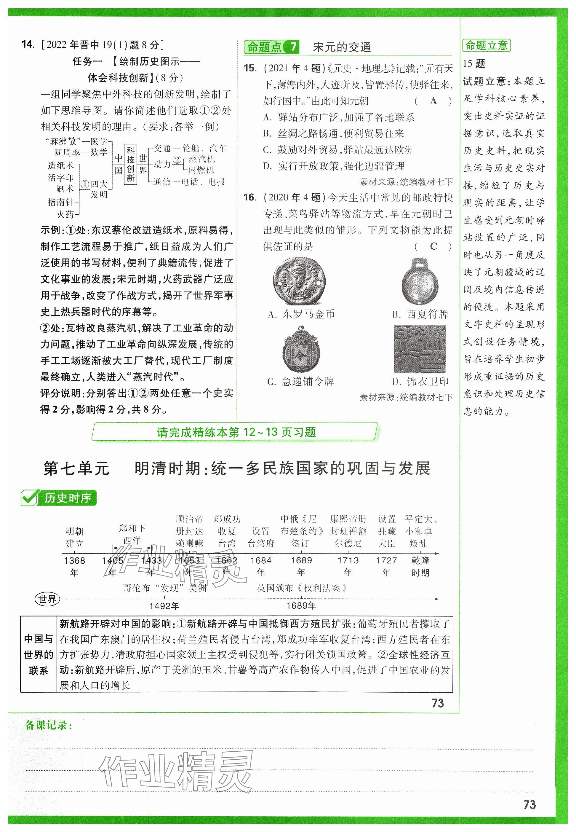 2024年万唯中考试题研究历史山西专版