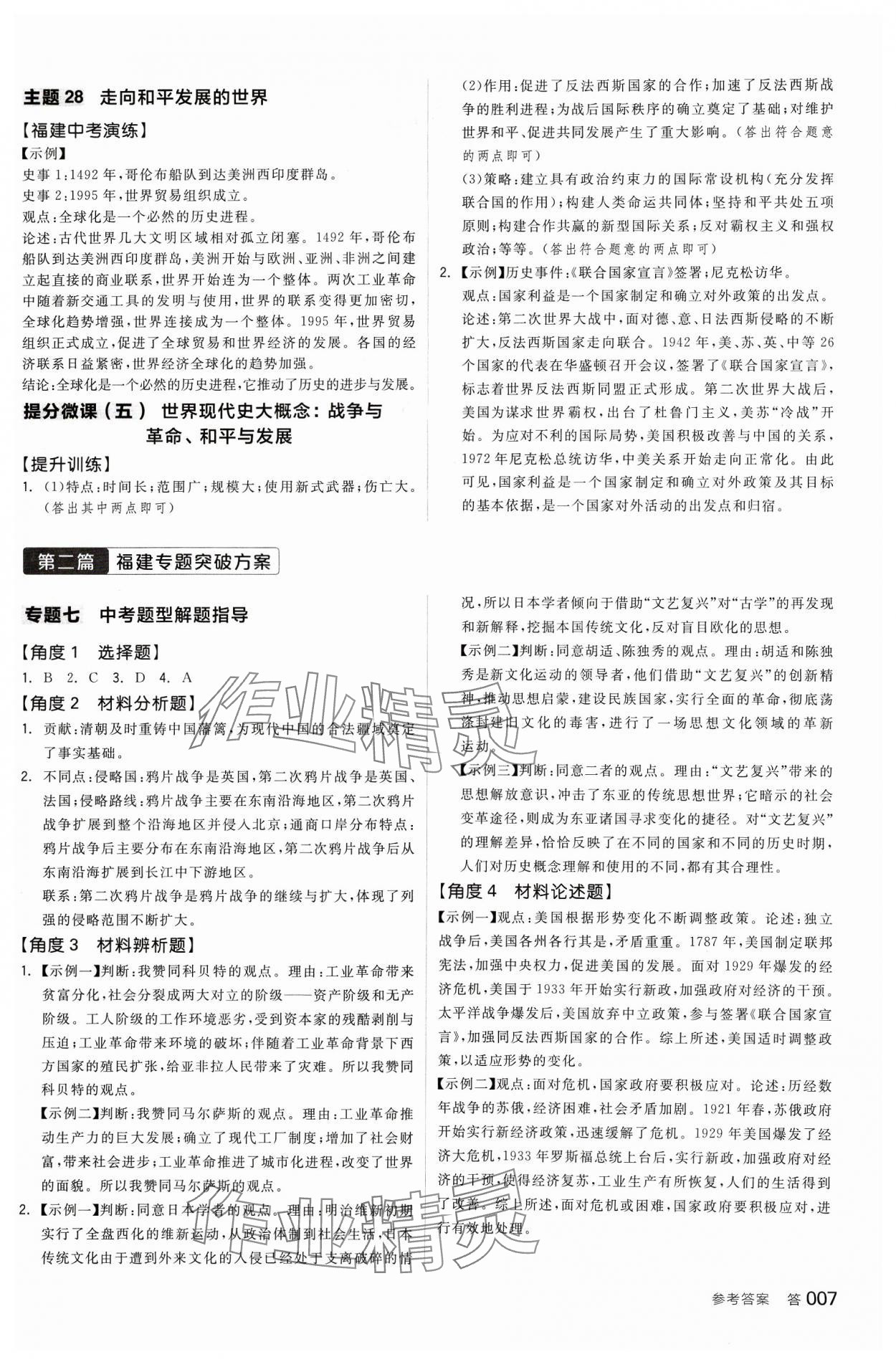 2024年全品中考复习方案历史福建专版