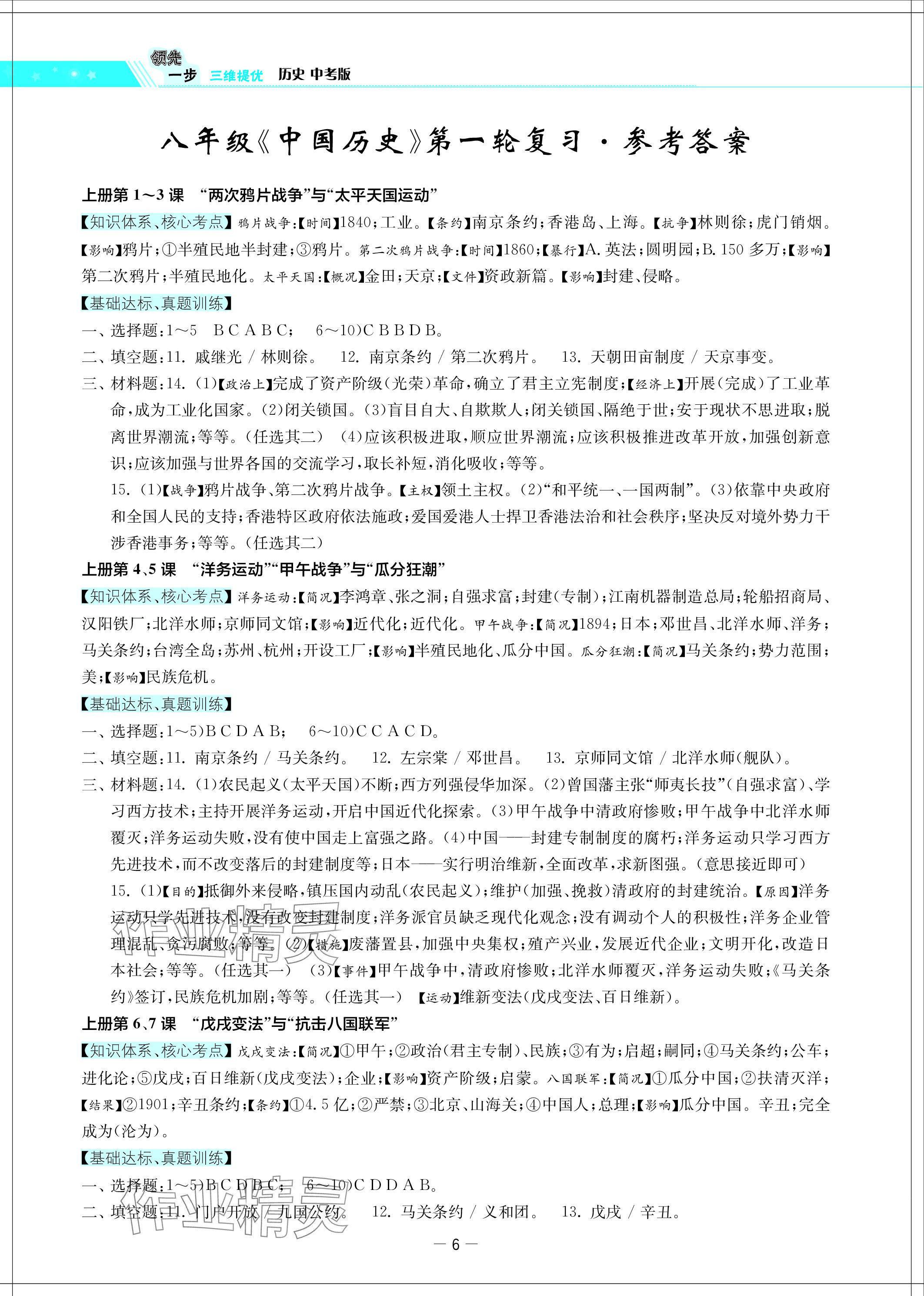 注:目前有些书本章节名称可能整理的还不是很完善,但都是按照顺序排列的,请同学们按照顺序仔细查找。练习册 2024年领先一步三维提优历史中考版 答案主要是用来给同学们做完题方便对答案用的,请勿直接抄袭。
