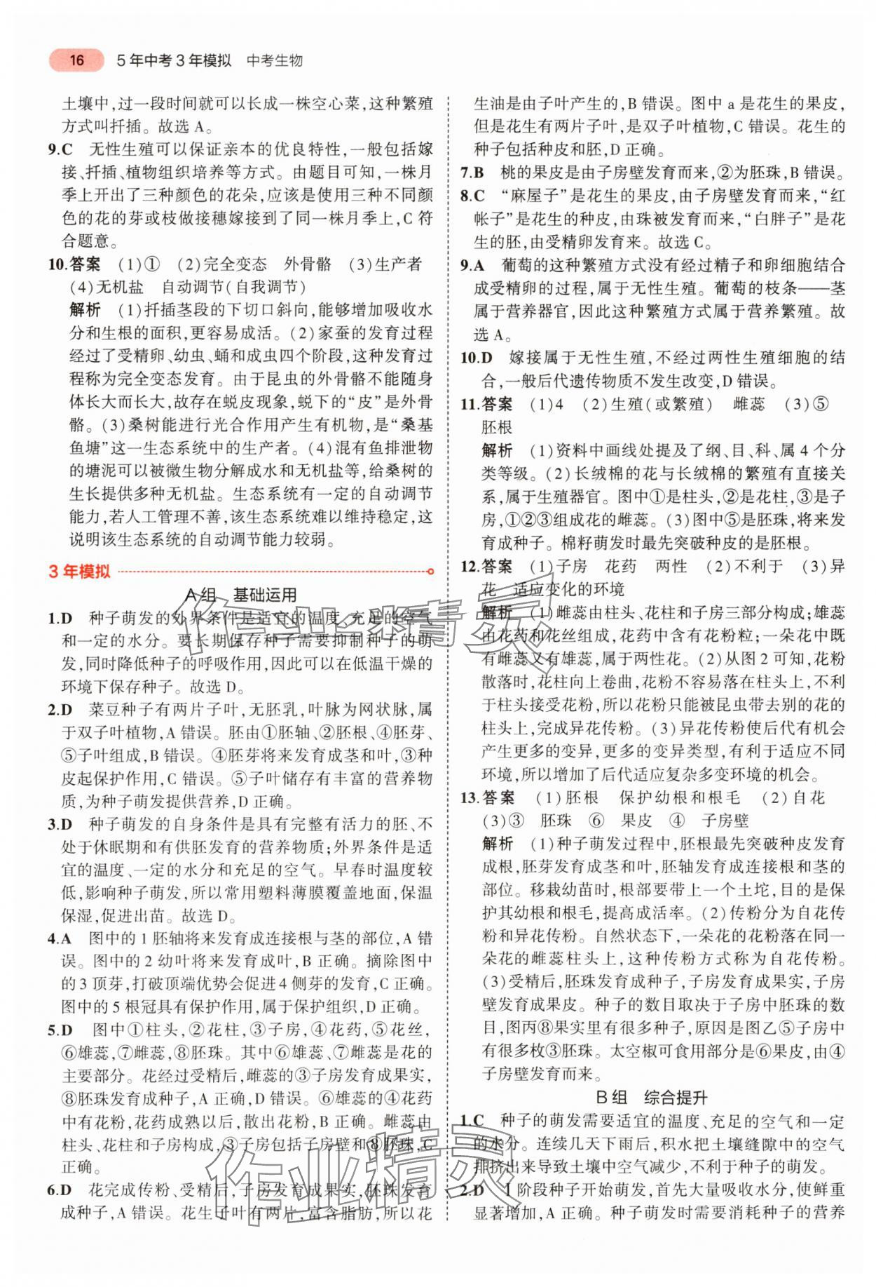 注:目前有些书本章节名称可能整理的还不是很完善,但都是按照顺序排列的,请同学们按照顺序仔细查找。练习册 2024年5年中考3年模拟中考生物 答案主要是用来给同学们做完题方便对答案用的,请勿直接抄袭。