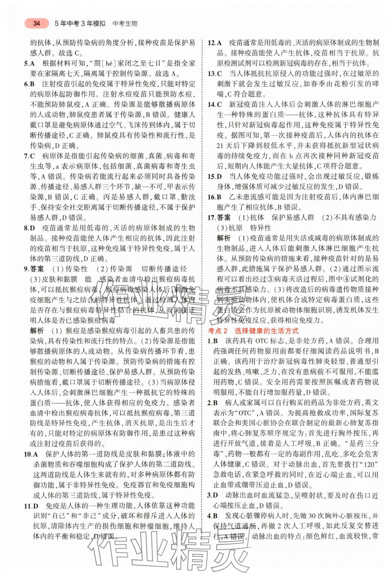 注:目前有些书本章节名称可能整理的还不是很完善,但都是按照顺序排列的,请同学们按照顺序仔细查找。练习册 2024年5年中考3年模拟中考生物 答案主要是用来给同学们做完题方便对答案用的,请勿直接抄袭。