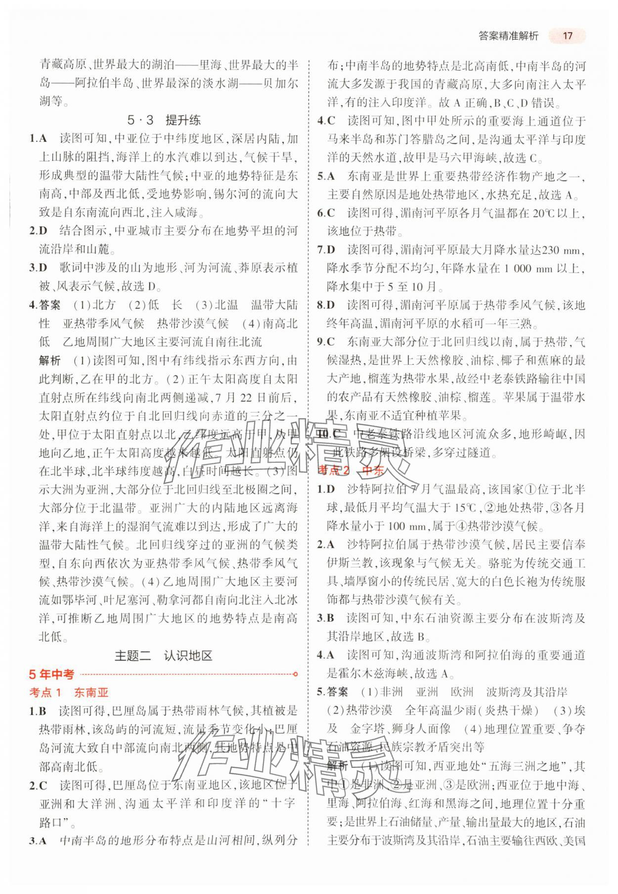注:目前有些书本章节名称可能整理的还不是很完善,但都是按照顺序排列的,请同学们按照顺序仔细查找。练习册 2024年5年中考3年模拟中考地理 答案主要是用来给同学们做完题方便对答案用的,请勿直接抄袭。