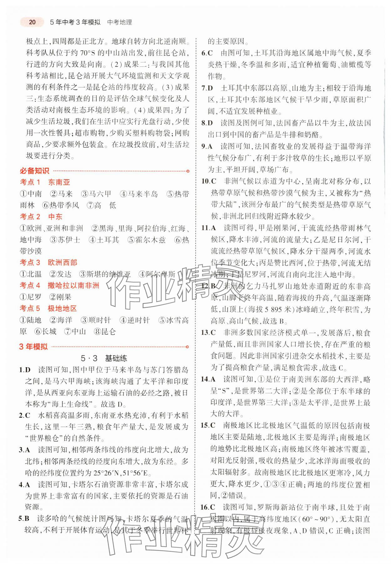 注:目前有些书本章节名称可能整理的还不是很完善,但都是按照顺序排列的,请同学们按照顺序仔细查找。练习册 2024年5年中考3年模拟中考地理 答案主要是用来给同学们做完题方便对答案用的,请勿直接抄袭。