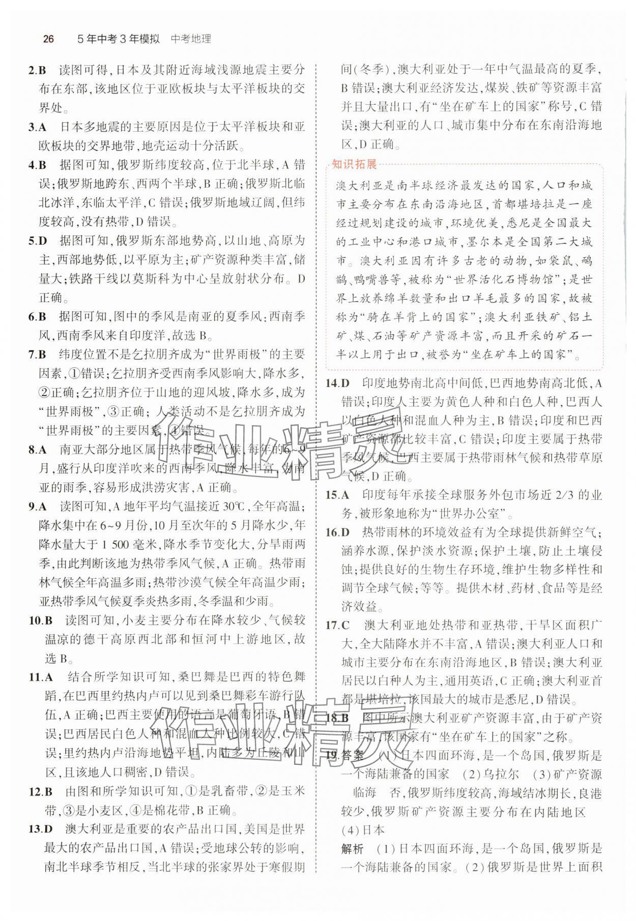 注:目前有些书本章节名称可能整理的还不是很完善,但都是按照顺序排列的,请同学们按照顺序仔细查找。练习册 2024年5年中考3年模拟中考地理 答案主要是用来给同学们做完题方便对答案用的,请勿直接抄袭。