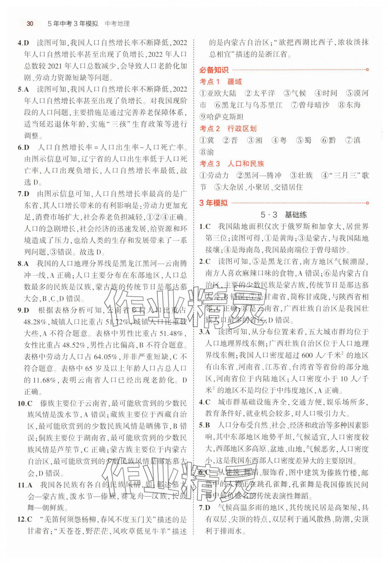 注:目前有些书本章节名称可能整理的还不是很完善,但都是按照顺序排列的,请同学们按照顺序仔细查找。练习册 2024年5年中考3年模拟中考地理 答案主要是用来给同学们做完题方便对答案用的,请勿直接抄袭。