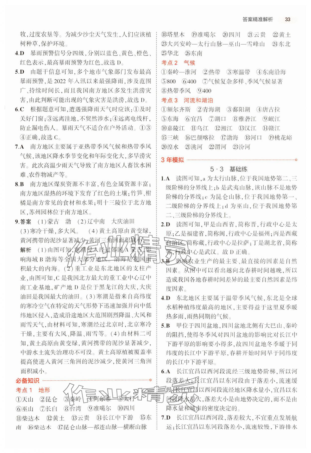 注:目前有些书本章节名称可能整理的还不是很完善,但都是按照顺序排列的,请同学们按照顺序仔细查找。练习册 2024年5年中考3年模拟中考地理 答案主要是用来给同学们做完题方便对答案用的,请勿直接抄袭。
