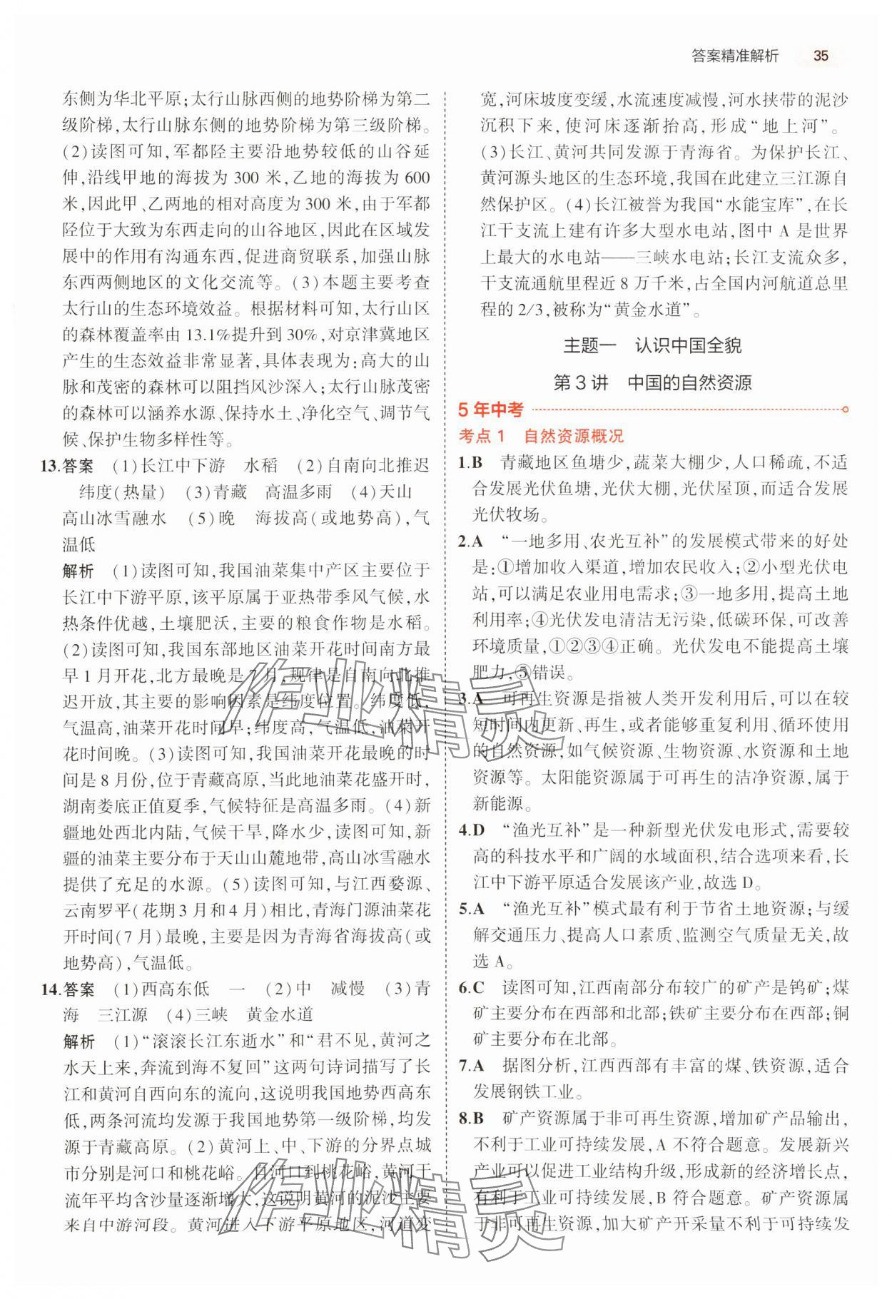注:目前有些书本章节名称可能整理的还不是很完善,但都是按照顺序排列的,请同学们按照顺序仔细查找。练习册 2024年5年中考3年模拟中考地理 答案主要是用来给同学们做完题方便对答案用的,请勿直接抄袭。