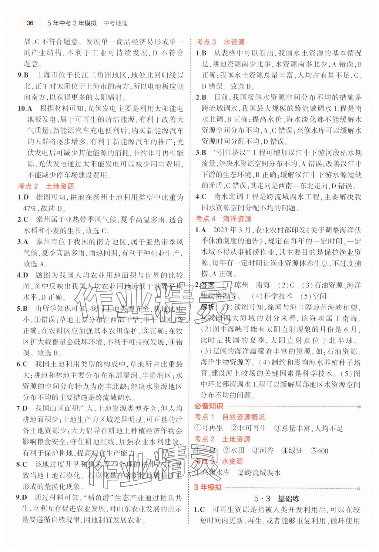 注:目前有些书本章节名称可能整理的还不是很完善,但都是按照顺序排列的,请同学们按照顺序仔细查找。练习册 2024年5年中考3年模拟中考地理 答案主要是用来给同学们做完题方便对答案用的,请勿直接抄袭。