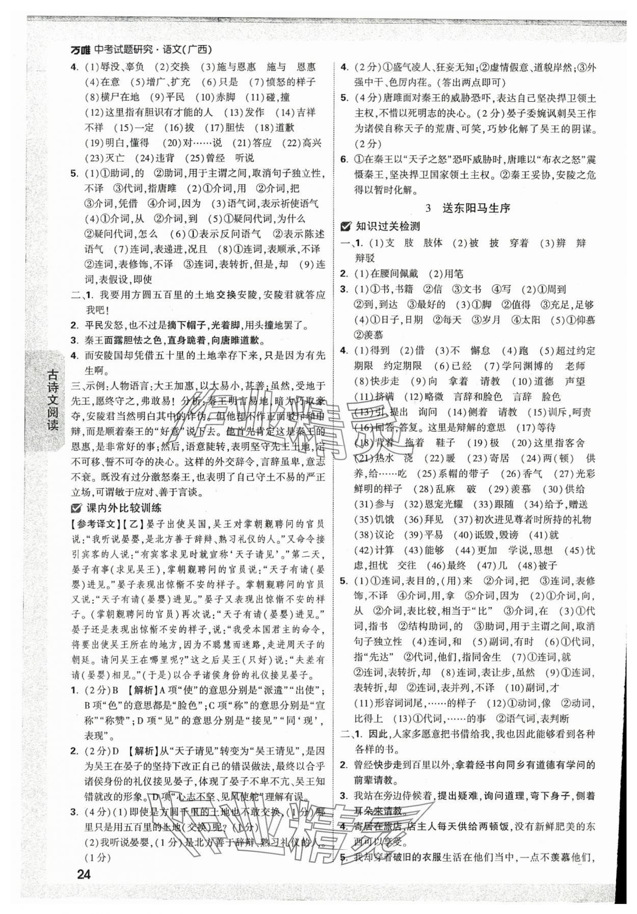 注:目前有些书本章节名称可能整理的还不是很完善,但都是按照顺序排列的,请同学们按照顺序仔细查找。练习册 2024年万唯中考试题研究语文人教版广西专版 答案主要是用来给同学们做完题方便对答案用的,请勿直接抄袭。