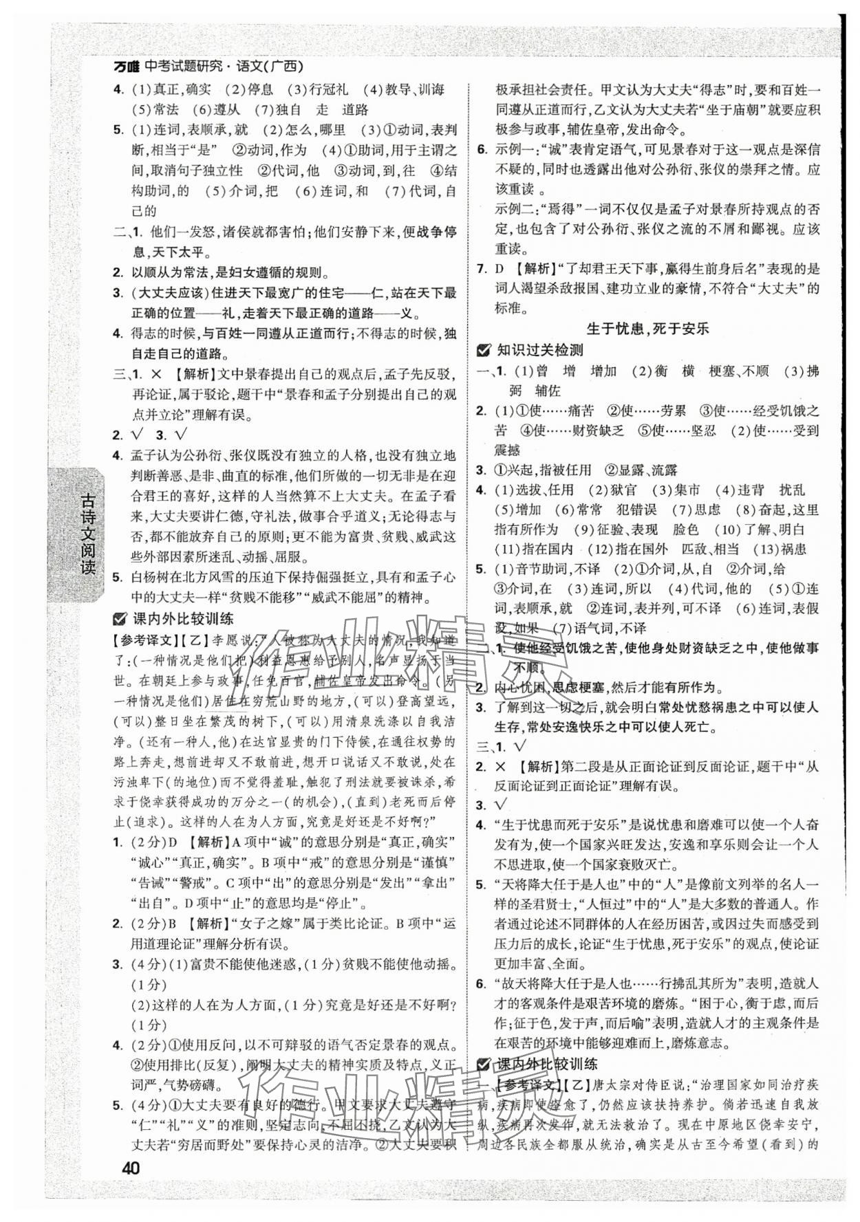 2024年万唯中考试题研究语文人教版广西专版