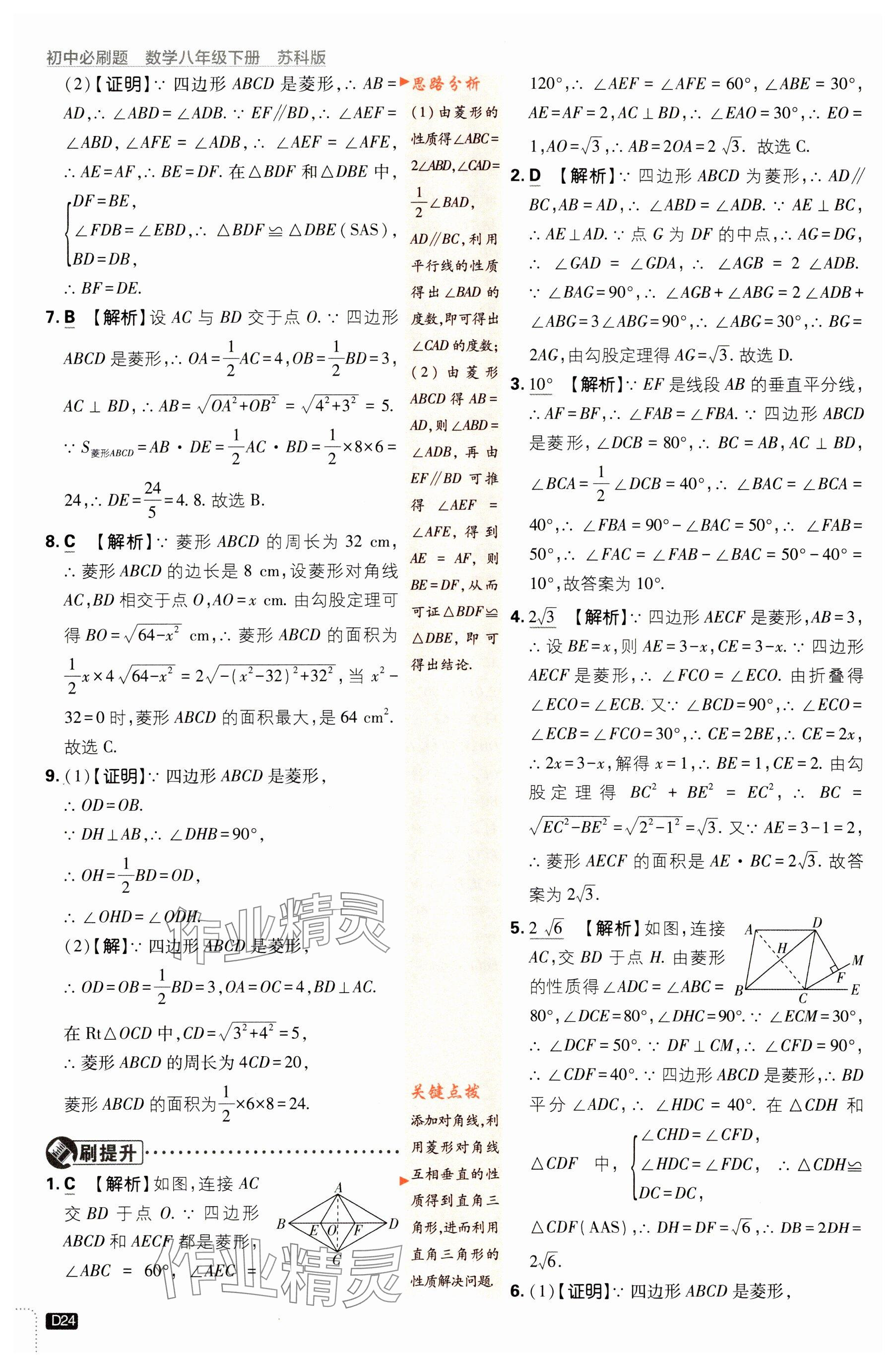 注:目前有些书本章节名称可能整理的还不是很完善,但都是按照顺序排列的,请同学们按照顺序仔细查找。练习册 2024年初中必刷题八年级数学下册苏科版 答案主要是用来给同学们做完题方便对答案用的,请勿直接抄袭。