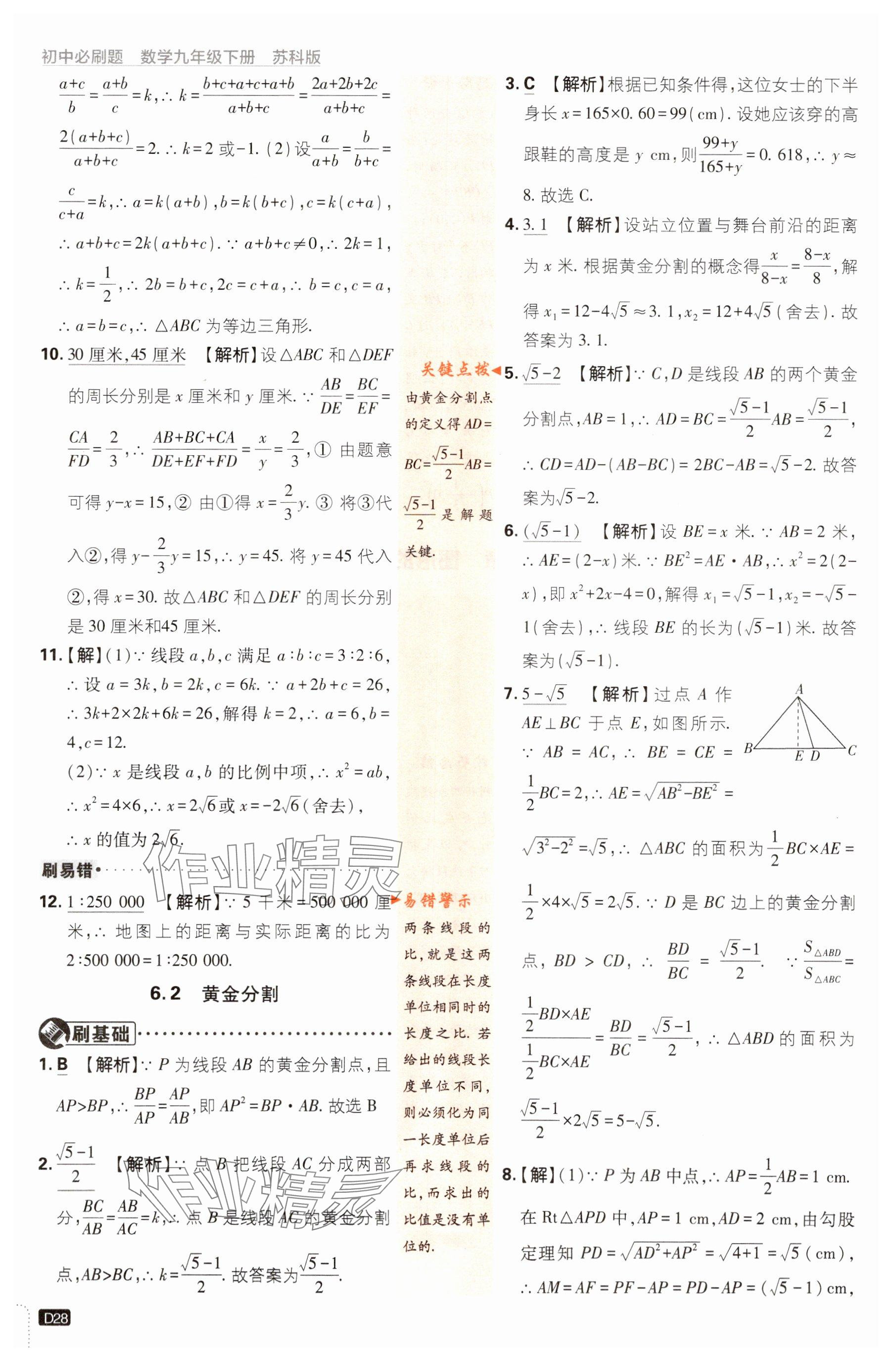 注:目前有些书本章节名称可能整理的还不是很完善,但都是按照顺序排列的,请同学们按照顺序仔细查找。练习册 2024年初中必刷题九年级数学下册苏科版 答案主要是用来给同学们做完题方便对答案用的,请勿直接抄袭。