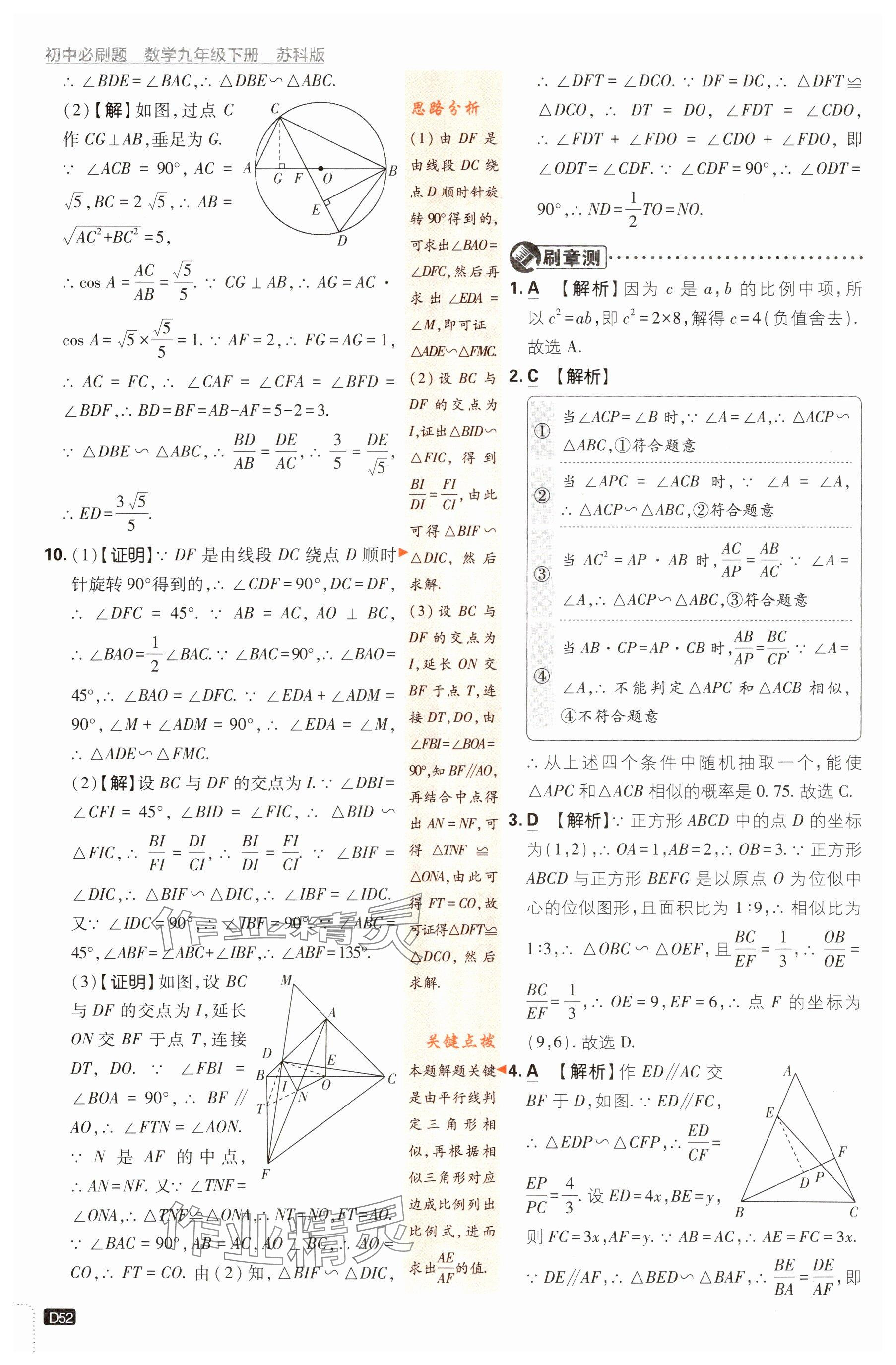 注:目前有些书本章节名称可能整理的还不是很完善,但都是按照顺序排列的,请同学们按照顺序仔细查找。练习册 2024年初中必刷题九年级数学下册苏科版 答案主要是用来给同学们做完题方便对答案用的,请勿直接抄袭。