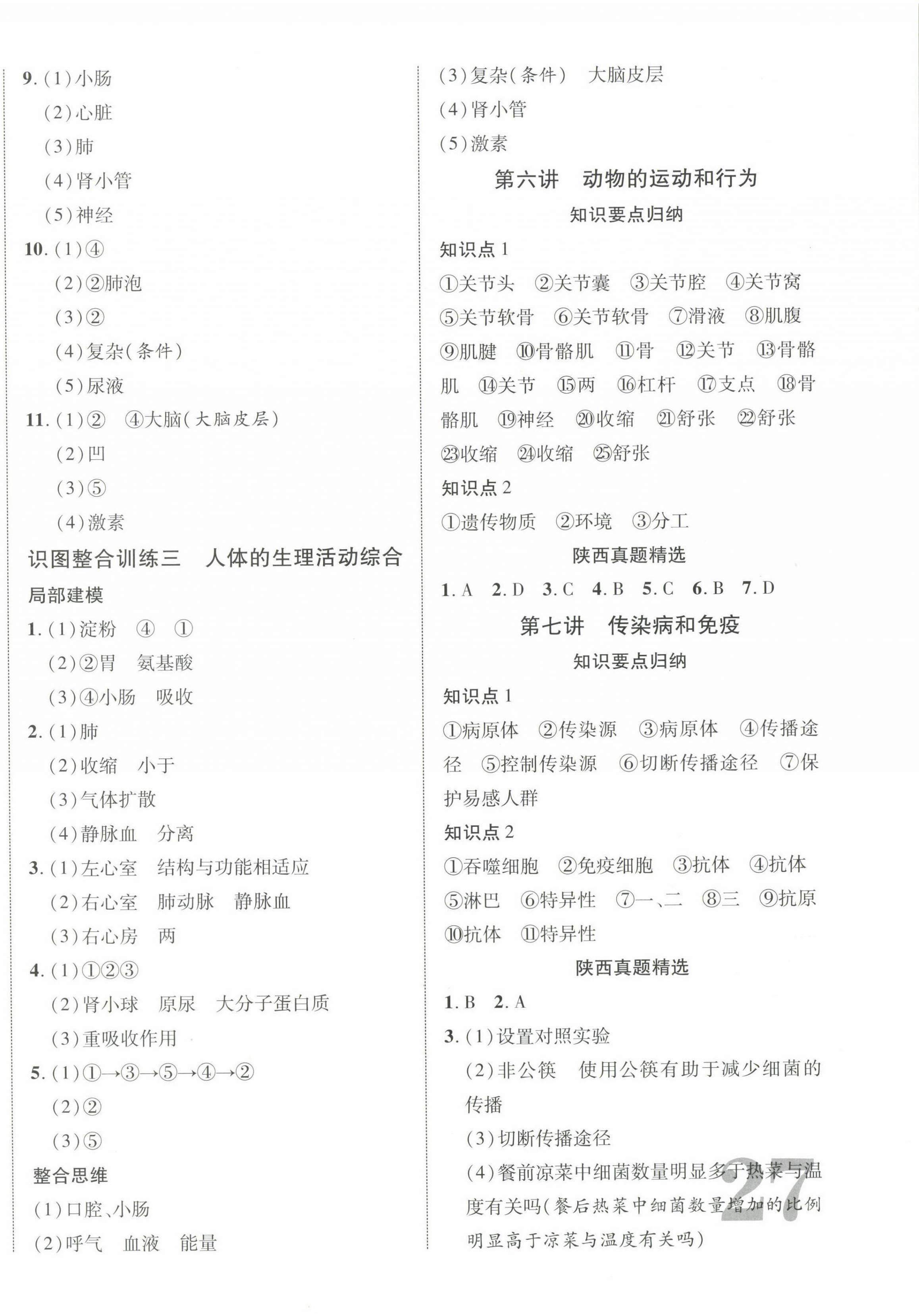 注:目前有些书本章节名称可能整理的还不是很完善,但都是按照顺序排列的,请同学们按照顺序仔细查找。练习册 2024年中考新突破生物人教版陕西专版 答案主要是用来给同学们做完题方便对答案用的,请勿直接抄袭。