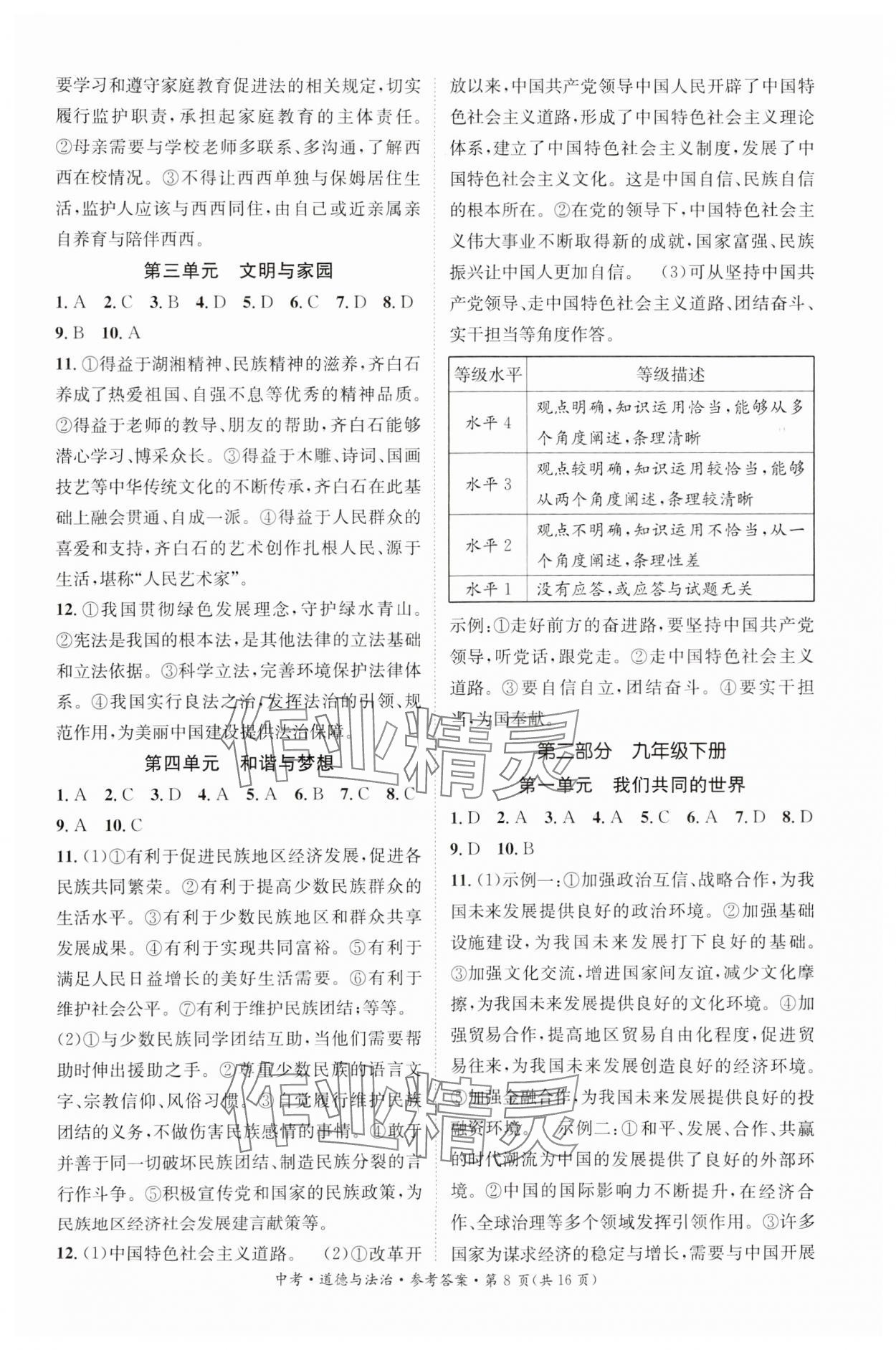 注:目前有些书本章节名称可能整理的还不是很完善,但都是按照顺序排列的,请同学们按照顺序仔细查找。练习册 2024年星城中考道德与法治长沙专版 答案主要是用来给同学们做完题方便对答案用的,请勿直接抄袭。