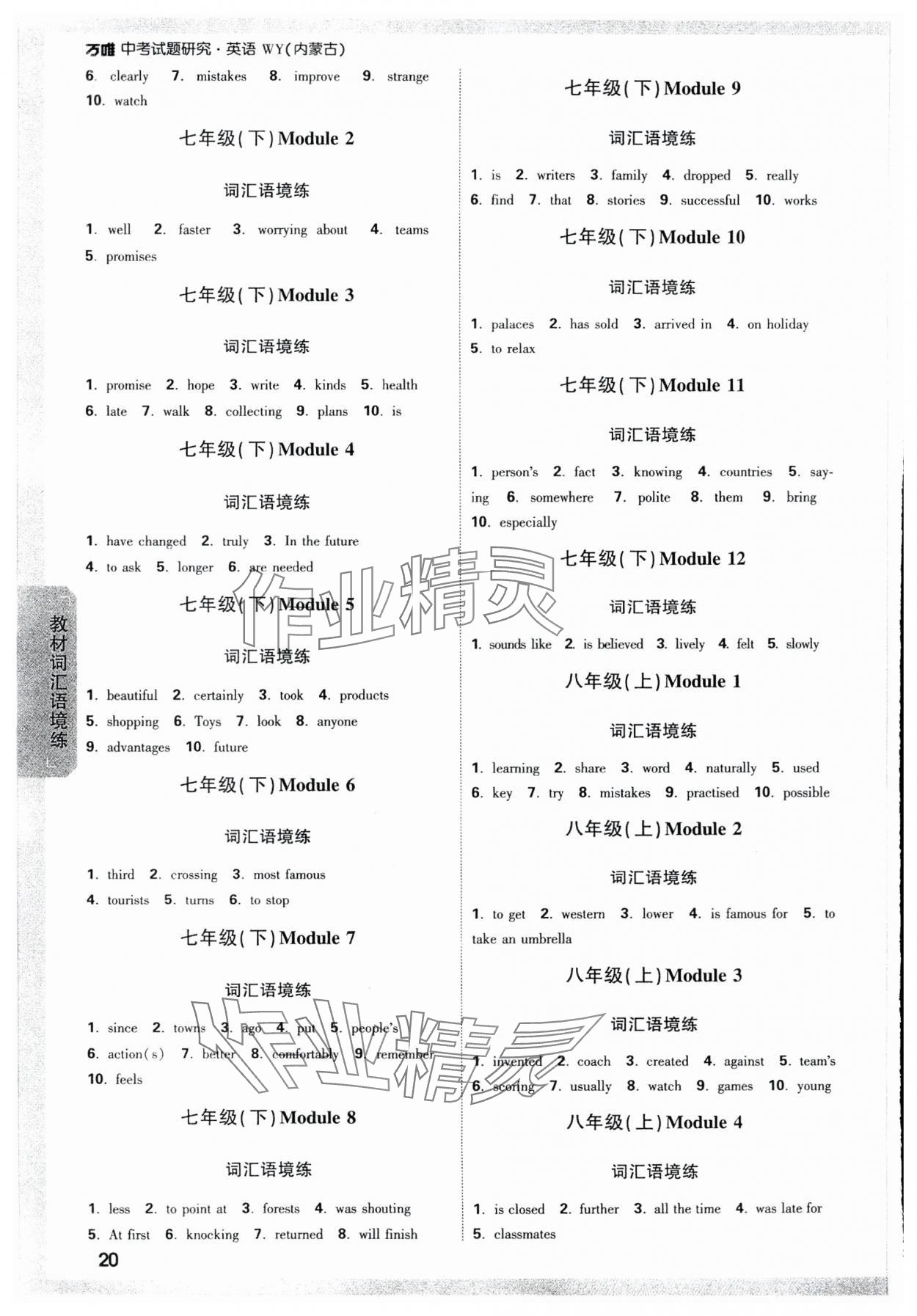 2024年万唯中考试题研究英语外研版内蒙古专版