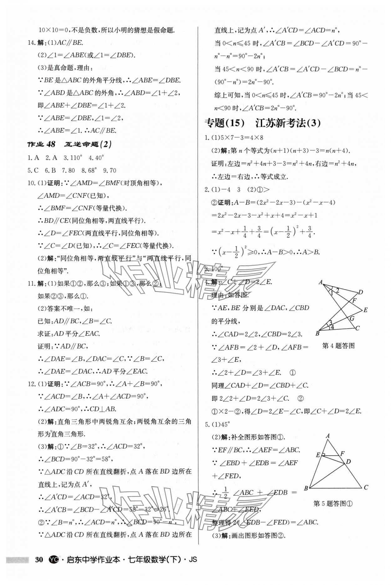 注:目前有些书本章节名称可能整理的还不是很完善,但都是按照顺序排列的,请同学们按照顺序仔细查找。练习册 2024年启东中学作业本七年级数学下册苏科版盐城专版 答案主要是用来给同学们做完题方便对答案用的,请勿直接抄袭。