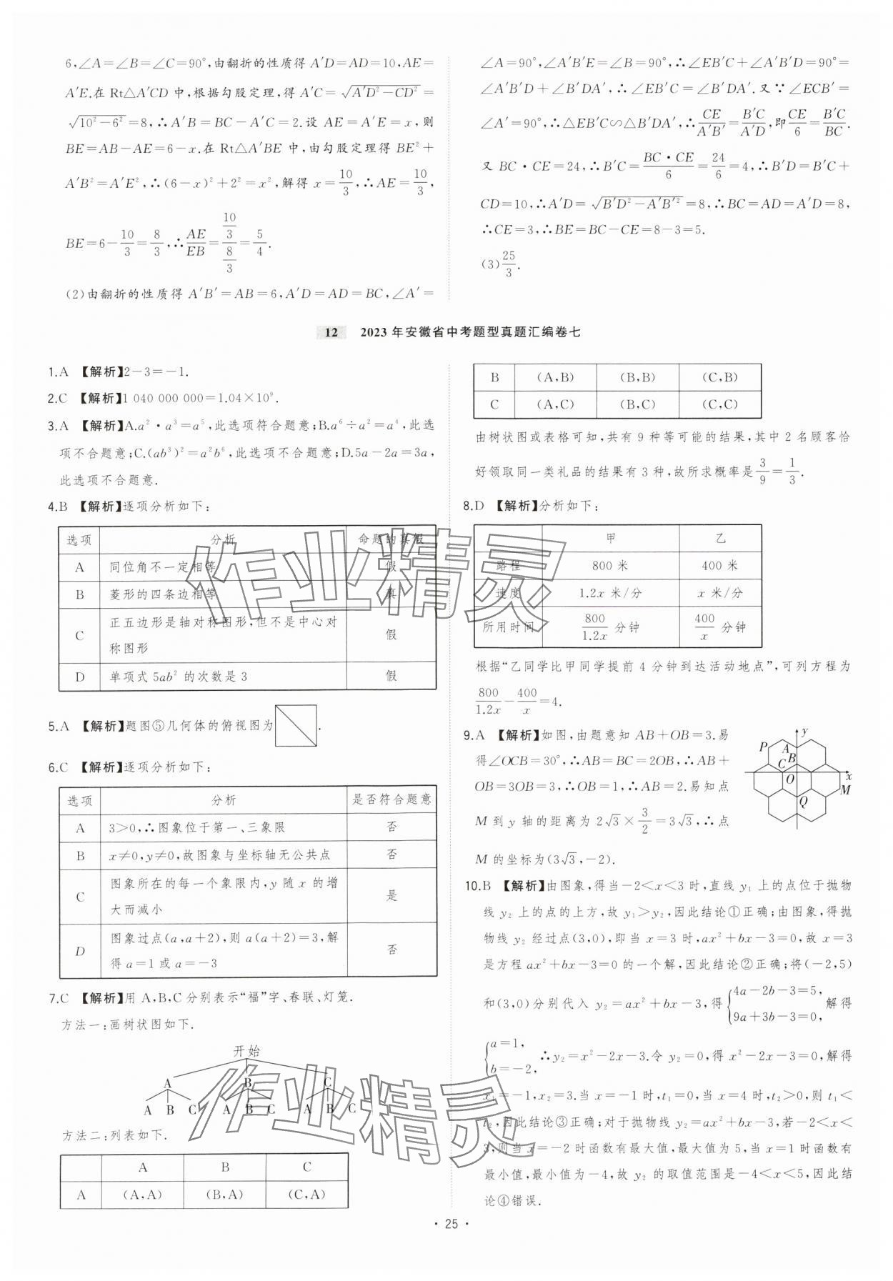注:目前有些书本章节名称可能整理的还不是很完善,但都是按照顺序排列的,请同学们按照顺序仔细查找。练习册 2024年金卷王安徽中考试题汇编数学 答案主要是用来给同学们做完题方便对答案用的,请勿直接抄袭。