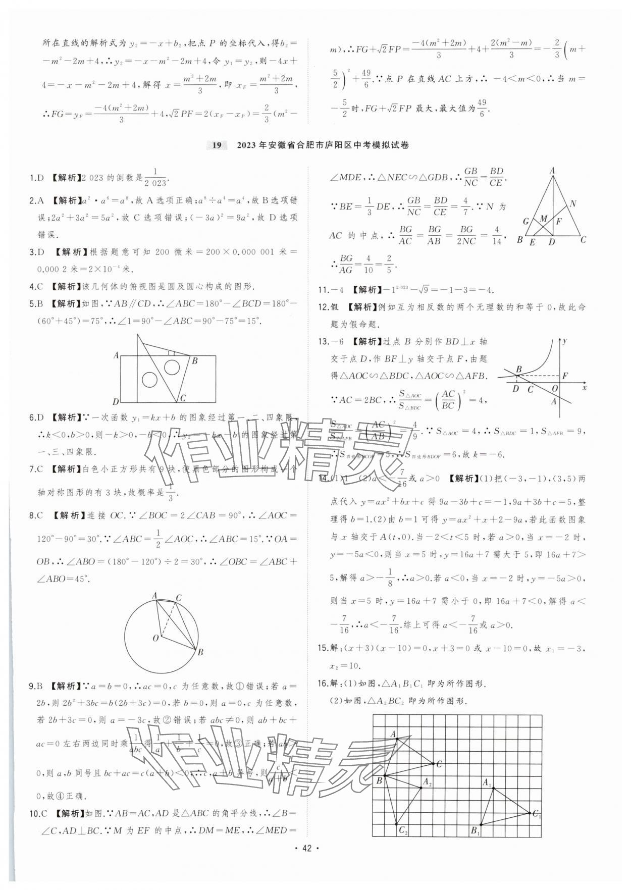 注:目前有些书本章节名称可能整理的还不是很完善,但都是按照顺序排列的,请同学们按照顺序仔细查找。练习册 2024年金卷王安徽中考试题汇编数学 答案主要是用来给同学们做完题方便对答案用的,请勿直接抄袭。