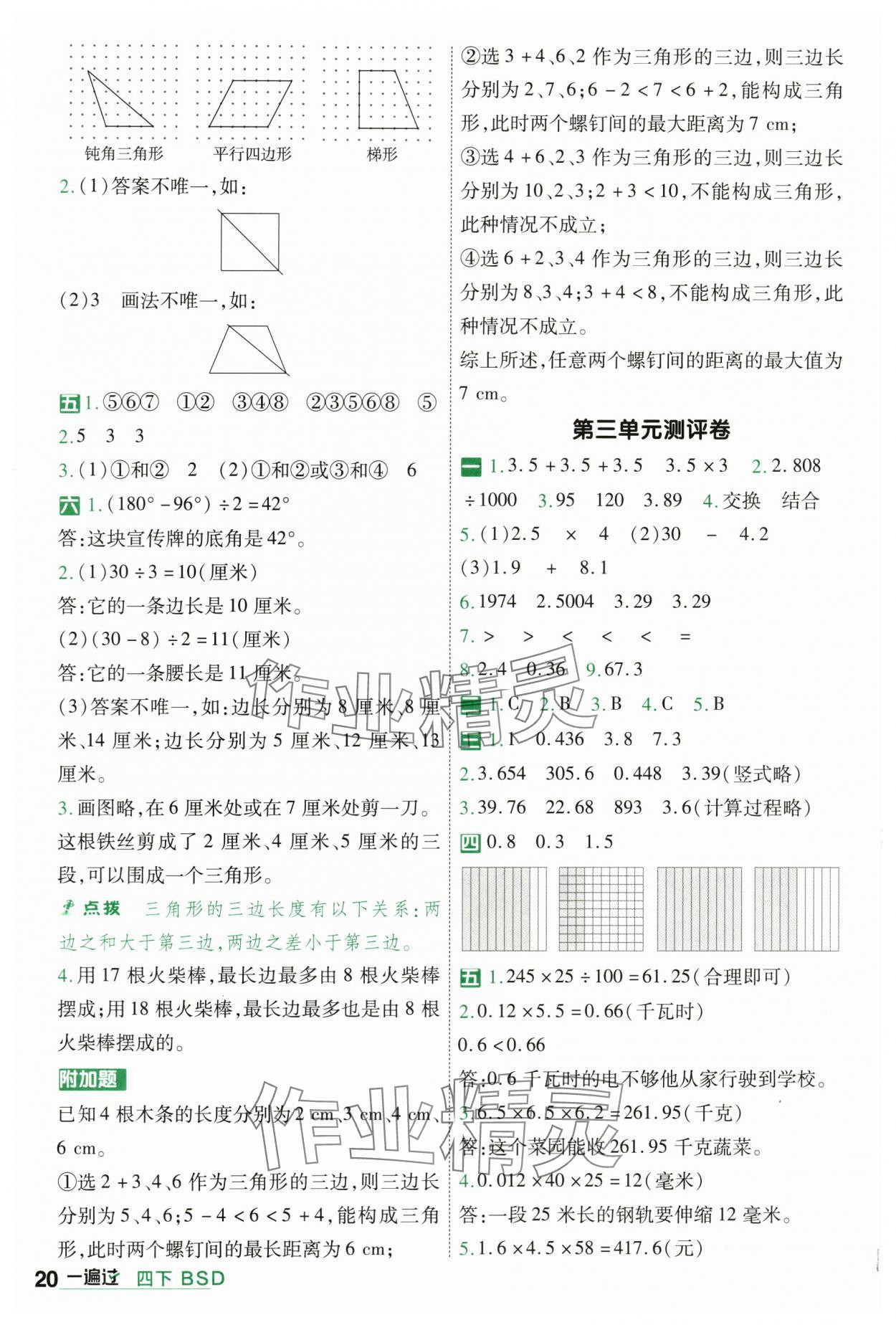 注:目前有些书本章节名称可能整理的还不是很完善,但都是按照顺序排列的,请同学们按照顺序仔细查找。练习册 2024年一遍过四年级数学下册北师大版 答案主要是用来给同学们做完题方便对答案用的,请勿直接抄袭。