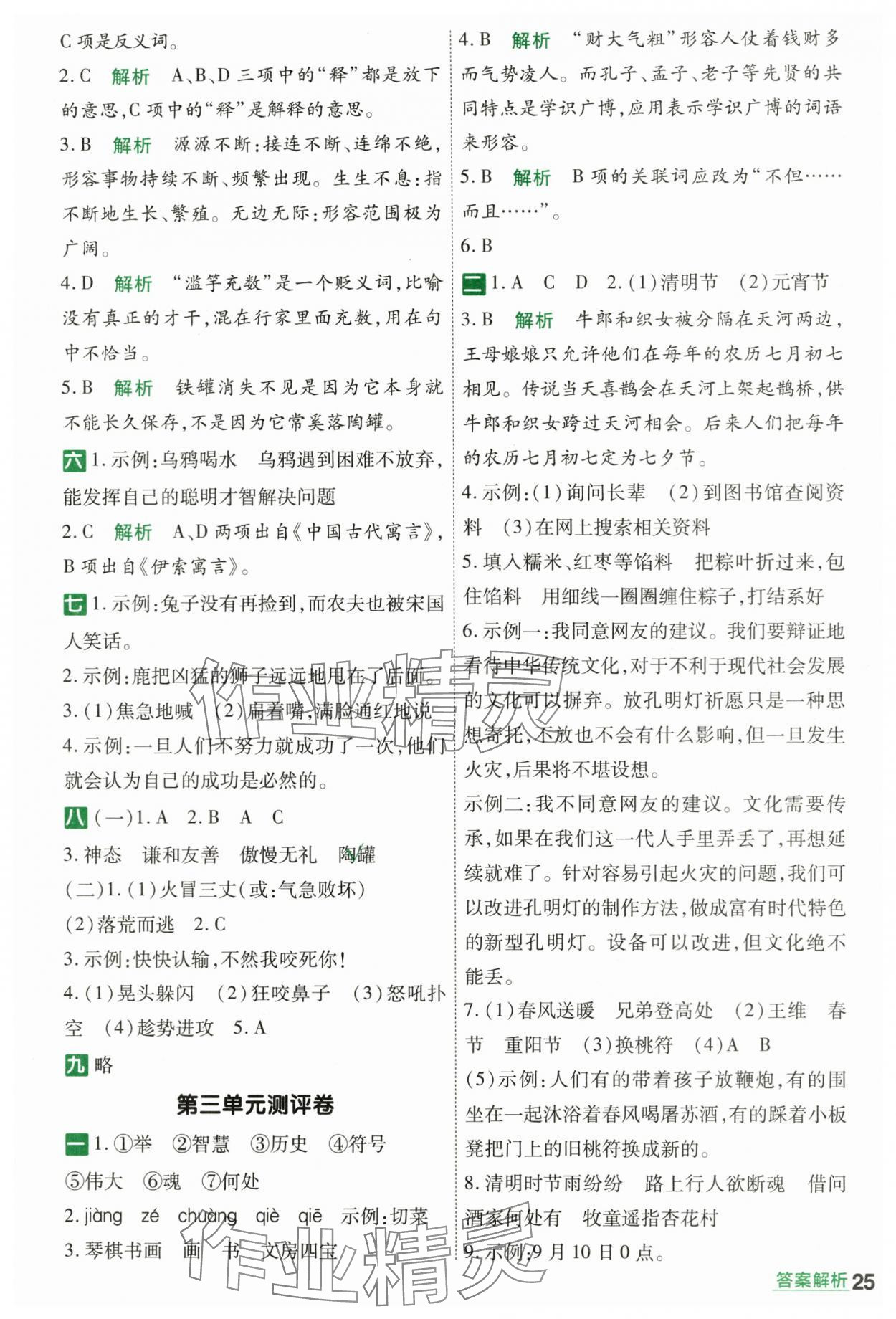 注:目前有些书本章节名称可能整理的还不是很完善,但都是按照顺序排列的,请同学们按照顺序仔细查找。练习册 2024年一遍过三年级语文下册人教版 答案主要是用来给同学们做完题方便对答案用的,请勿直接抄袭。