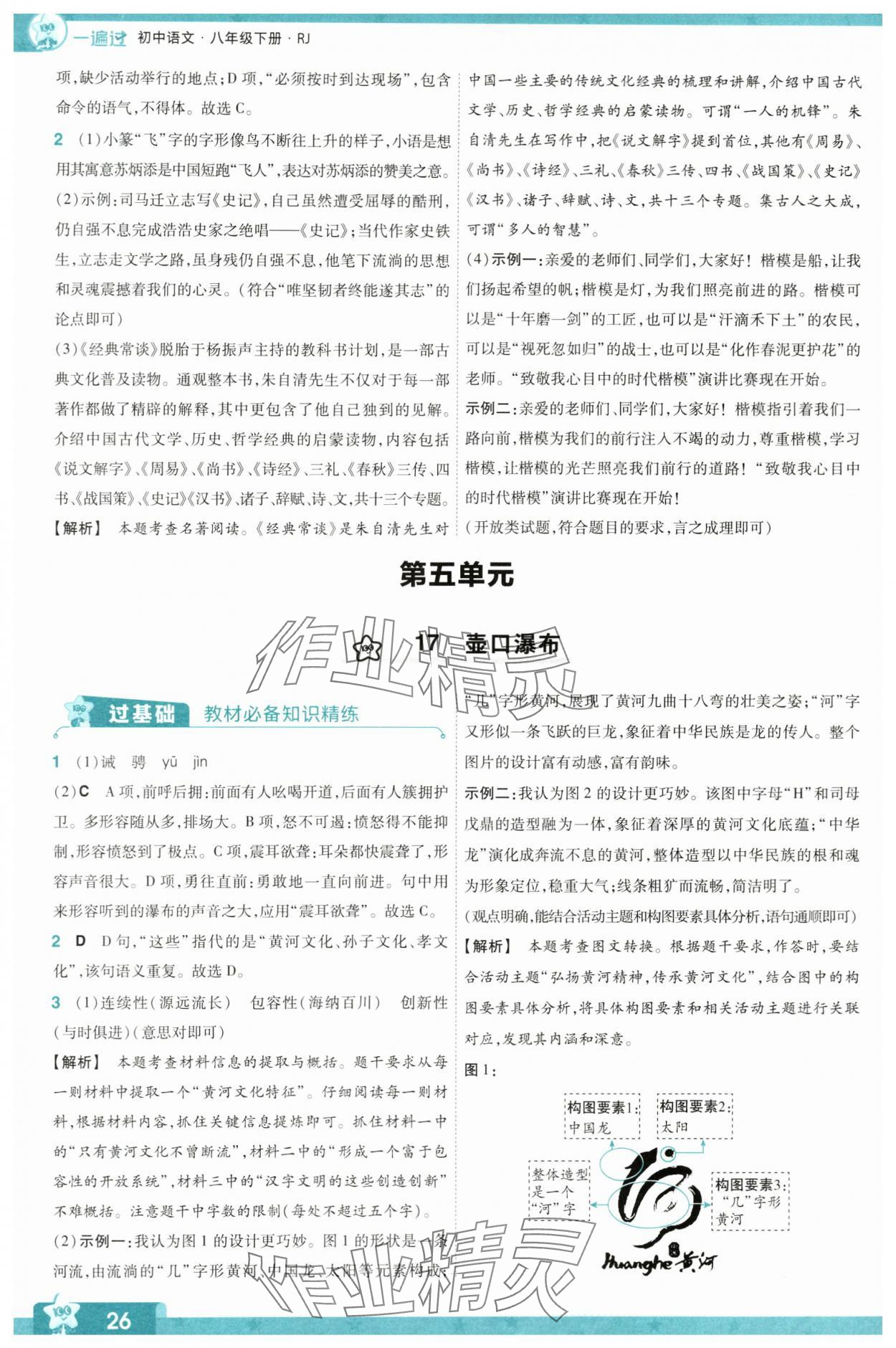 注:目前有些书本章节名称可能整理的还不是很完善,但都是按照顺序排列的,请同学们按照顺序仔细查找。练习册 2024年一遍过八年级语文下册人教版 答案主要是用来给同学们做完题方便对答案用的,请勿直接抄袭。