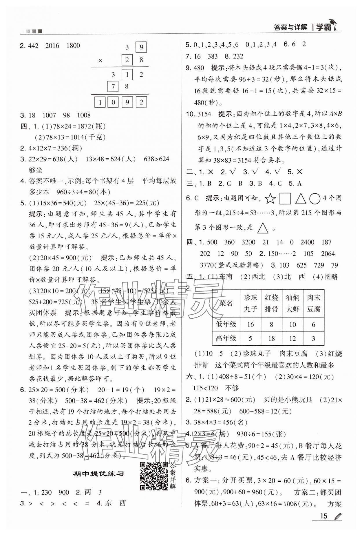 2024年学霸甘肃少年儿童出版社三年级数学下册人教版