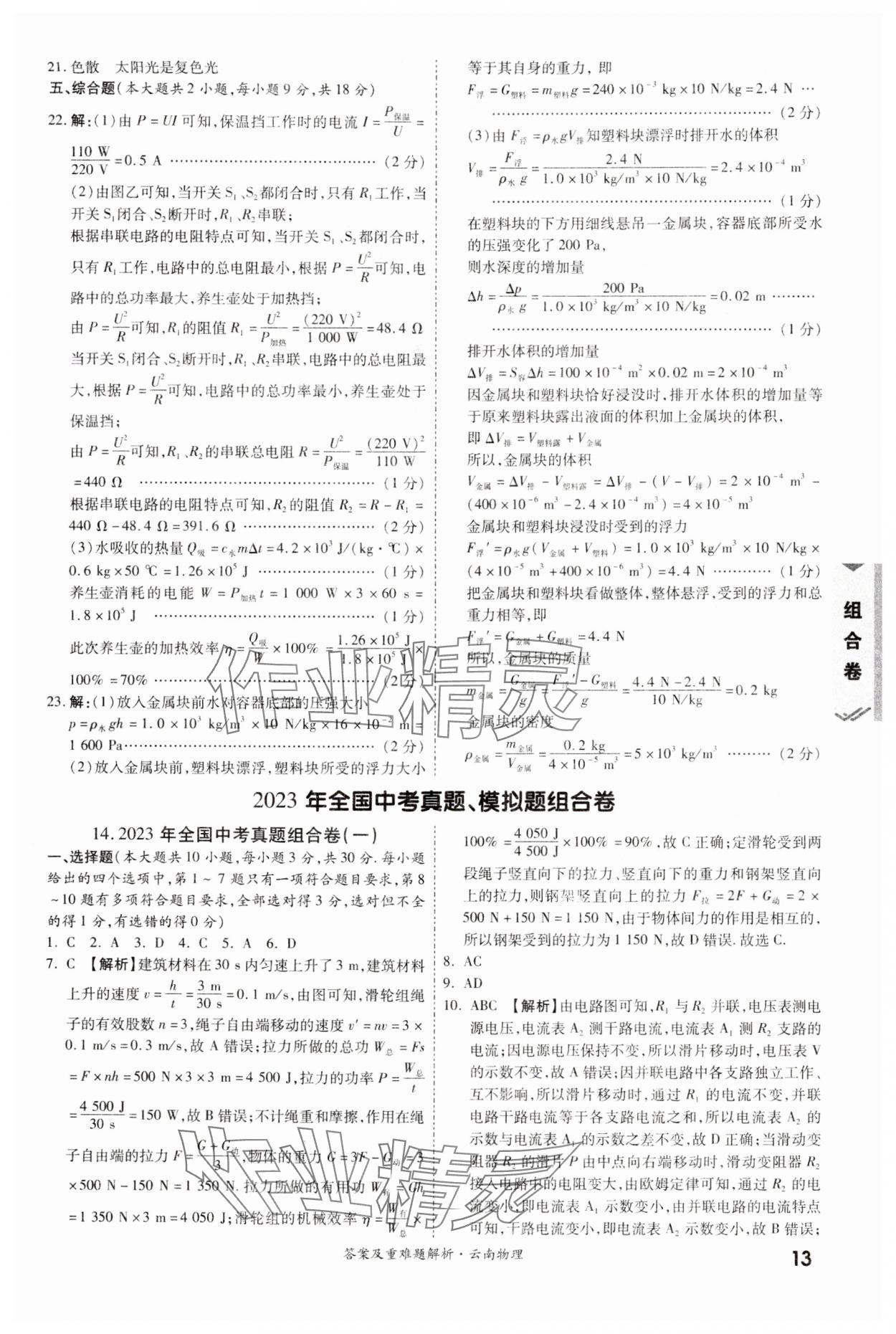 注:目前有些书本章节名称可能整理的还不是很完善,但都是按照顺序排列的,请同学们按照顺序仔细查找。练习册 2024年一战成名中考真题与拓展训练物理云南专版 答案主要是用来给同学们做完题方便对答案用的,请勿直接抄袭。