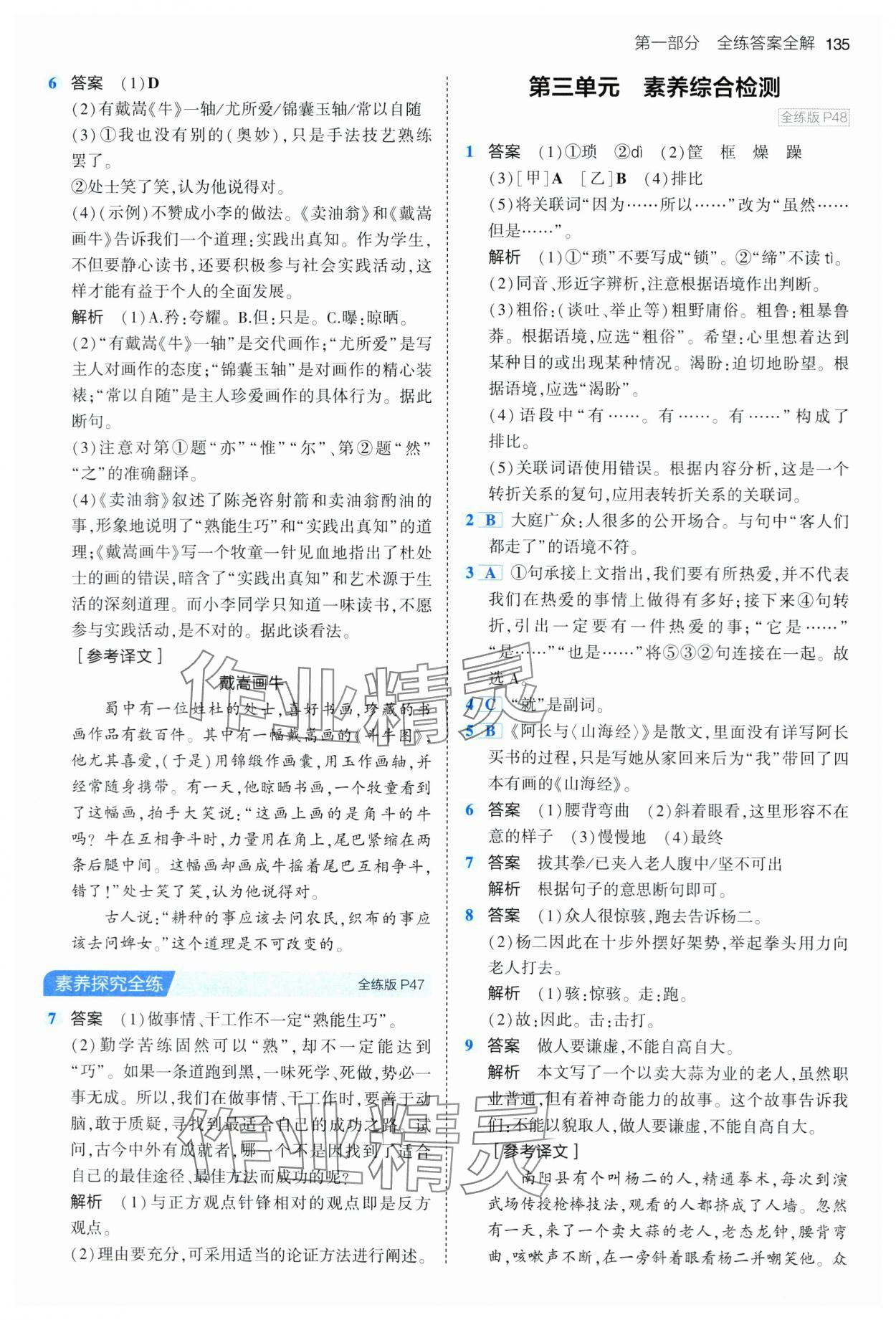 注:目前有些书本章节名称可能整理的还不是很完善,但都是按照顺序排列的,请同学们按照顺序仔细查找。练习册 2024年5年中考3年模拟七年级语文下册人教版 答案主要是用来给同学们做完题方便对答案用的,请勿直接抄袭。