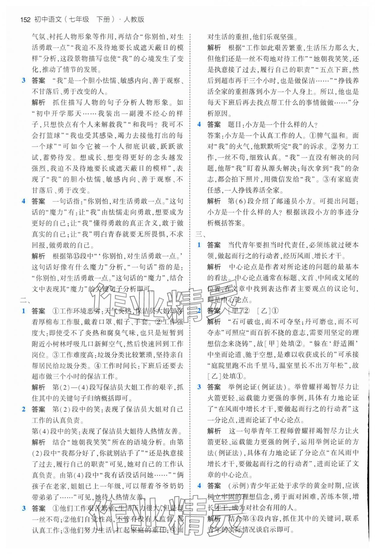 注:目前有些书本章节名称可能整理的还不是很完善,但都是按照顺序排列的,请同学们按照顺序仔细查找。练习册 2024年5年中考3年模拟七年级语文下册人教版 答案主要是用来给同学们做完题方便对答案用的,请勿直接抄袭。