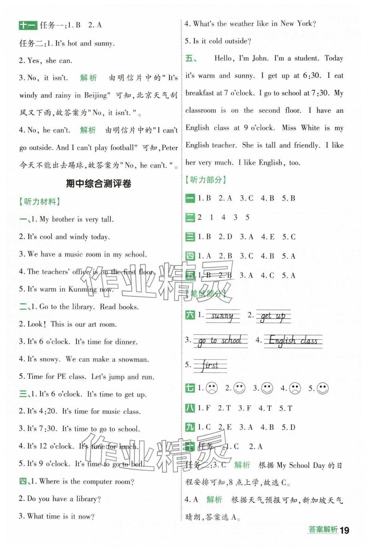 注:目前有些书本章节名称可能整理的还不是很完善,但都是按照顺序排列的,请同学们按照顺序仔细查找。练习册 2024年一遍过四年级小学英语下册人教版 答案主要是用来给同学们做完题方便对答案用的,请勿直接抄袭。
