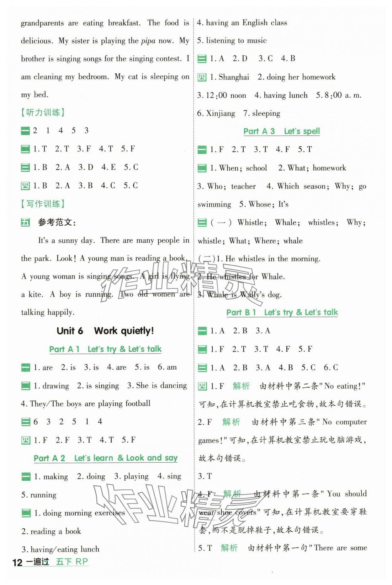 注:目前有些书本章节名称可能整理的还不是很完善,但都是按照顺序排列的,请同学们按照顺序仔细查找。练习册 2024年一遍过五年级小学英语下册人教版 答案主要是用来给同学们做完题方便对答案用的,请勿直接抄袭。
