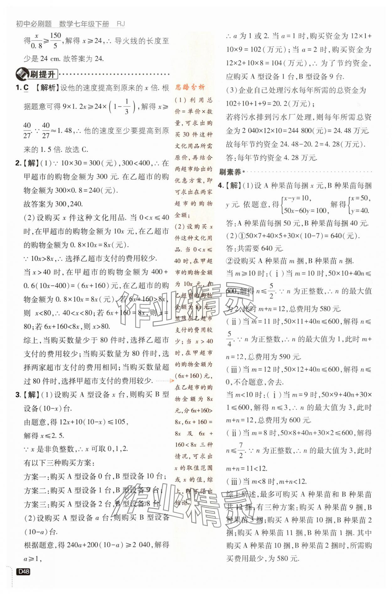 注:目前有些书本章节名称可能整理的还不是很完善,但都是按照顺序排列的,请同学们按照顺序仔细查找。练习册 2024年初中必刷题七年级数学下册人教版 答案主要是用来给同学们做完题方便对答案用的,请勿直接抄袭。