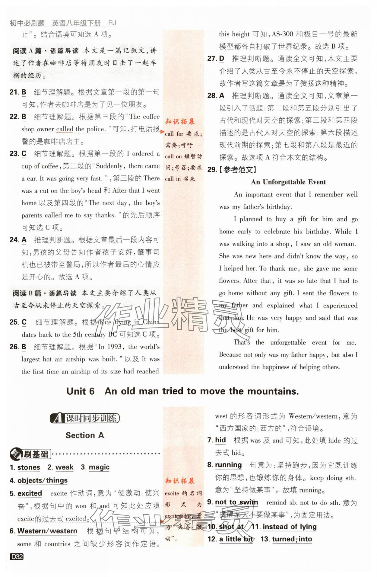 注:目前有些书本章节名称可能整理的还不是很完善,但都是按照顺序排列的,请同学们按照顺序仔细查找。练习册 2024年初中必刷题八年级英语下册人教版 答案主要是用来给同学们做完题方便对答案用的,请勿直接抄袭。