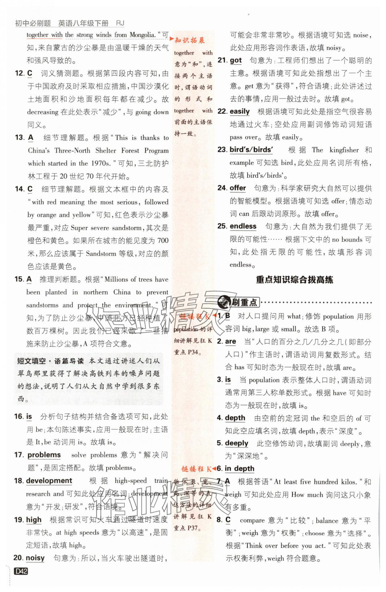 注:目前有些书本章节名称可能整理的还不是很完善,但都是按照顺序排列的,请同学们按照顺序仔细查找。练习册 2024年初中必刷题八年级英语下册人教版 答案主要是用来给同学们做完题方便对答案用的,请勿直接抄袭。