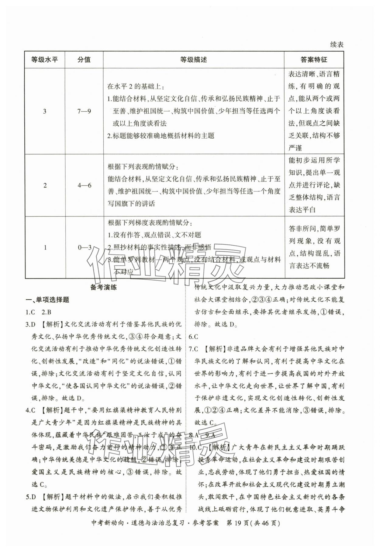 注:目前有些书本章节名称可能整理的还不是很完善,但都是按照顺序排列的,请同学们按照顺序仔细查找。练习册 2024年中考新动向道德与法治 答案主要是用来给同学们做完题方便对答案用的,请勿直接抄袭。