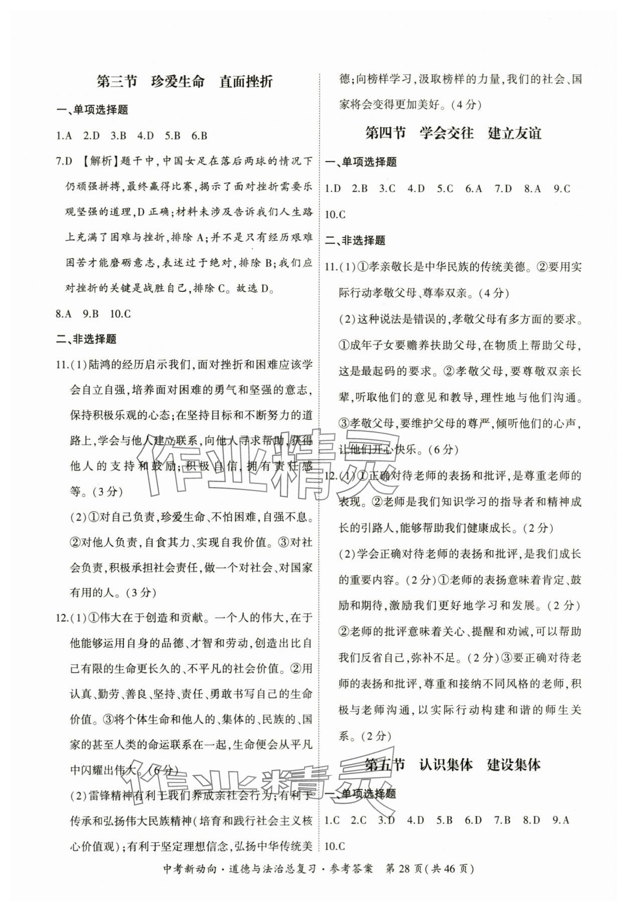 注:目前有些书本章节名称可能整理的还不是很完善,但都是按照顺序排列的,请同学们按照顺序仔细查找。练习册 2024年中考新动向道德与法治 答案主要是用来给同学们做完题方便对答案用的,请勿直接抄袭。