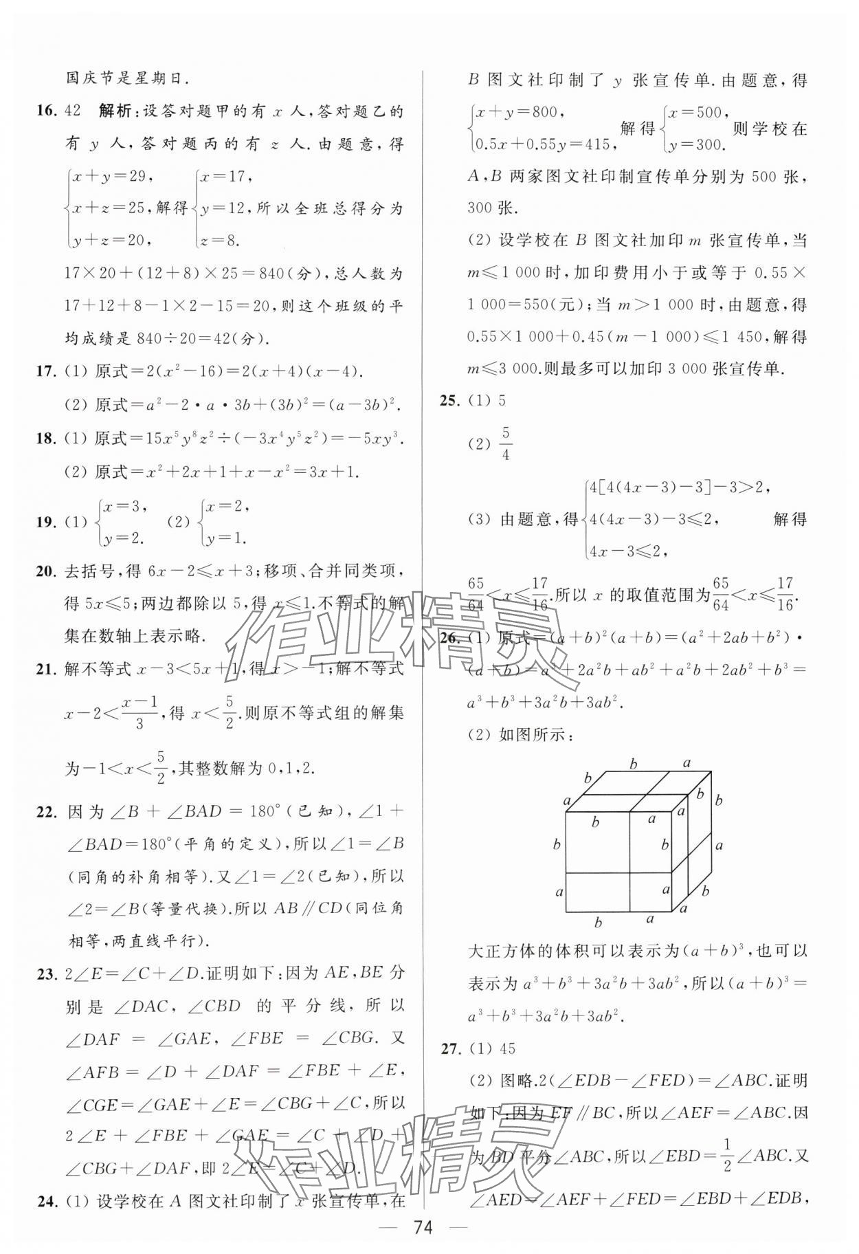 注:目前有些书本章节名称可能整理的还不是很完善,但都是按照顺序排列的,请同学们按照顺序仔细查找。练习册 2024年亮点给力大试卷七年级数学下册苏科版 答案主要是用来给同学们做完题方便对答案用的,请勿直接抄袭。