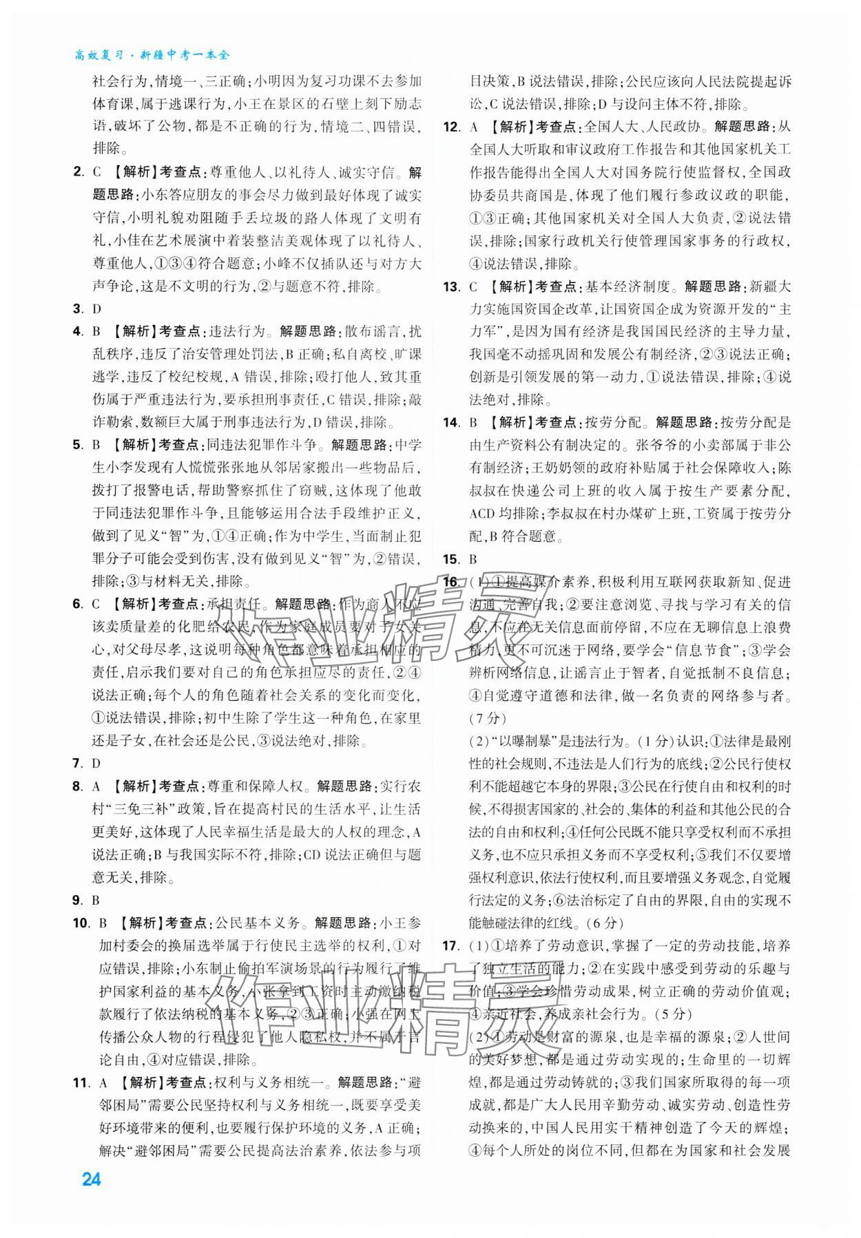 注:目前有些书本章节名称可能整理的还不是很完善,但都是按照顺序排列的,请同学们按照顺序仔细查找。练习册 2024年高效复习新疆中考道德与法治 答案主要是用来给同学们做完题方便对答案用的,请勿直接抄袭。