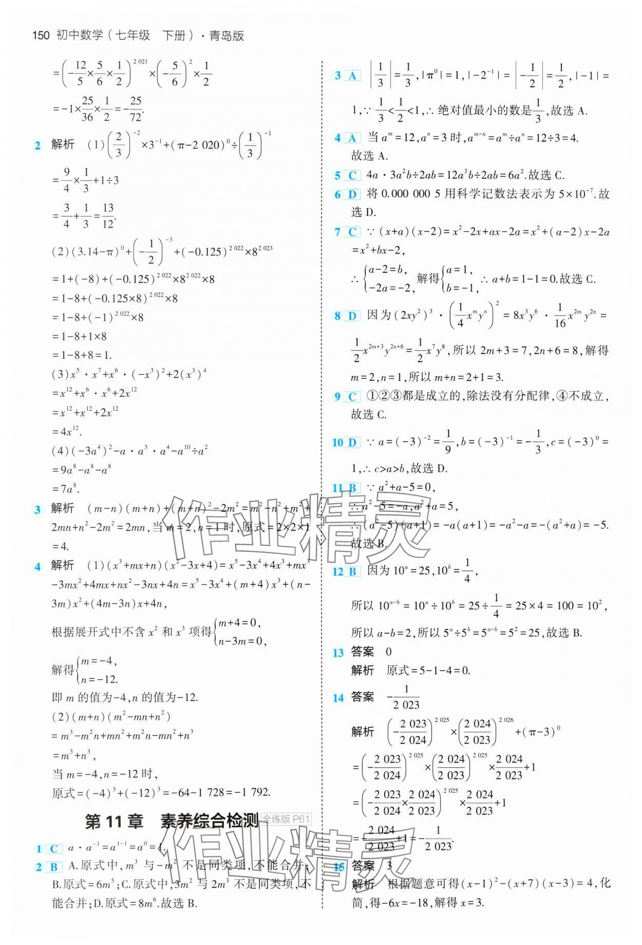 注:目前有些书本章节名称可能整理的还不是很完善,但都是按照顺序排列的,请同学们按照顺序仔细查找。练习册 2024年5年中考3年模拟初中数学七年级下册青岛版 答案主要是用来给同学们做完题方便对答案用的,请勿直接抄袭。